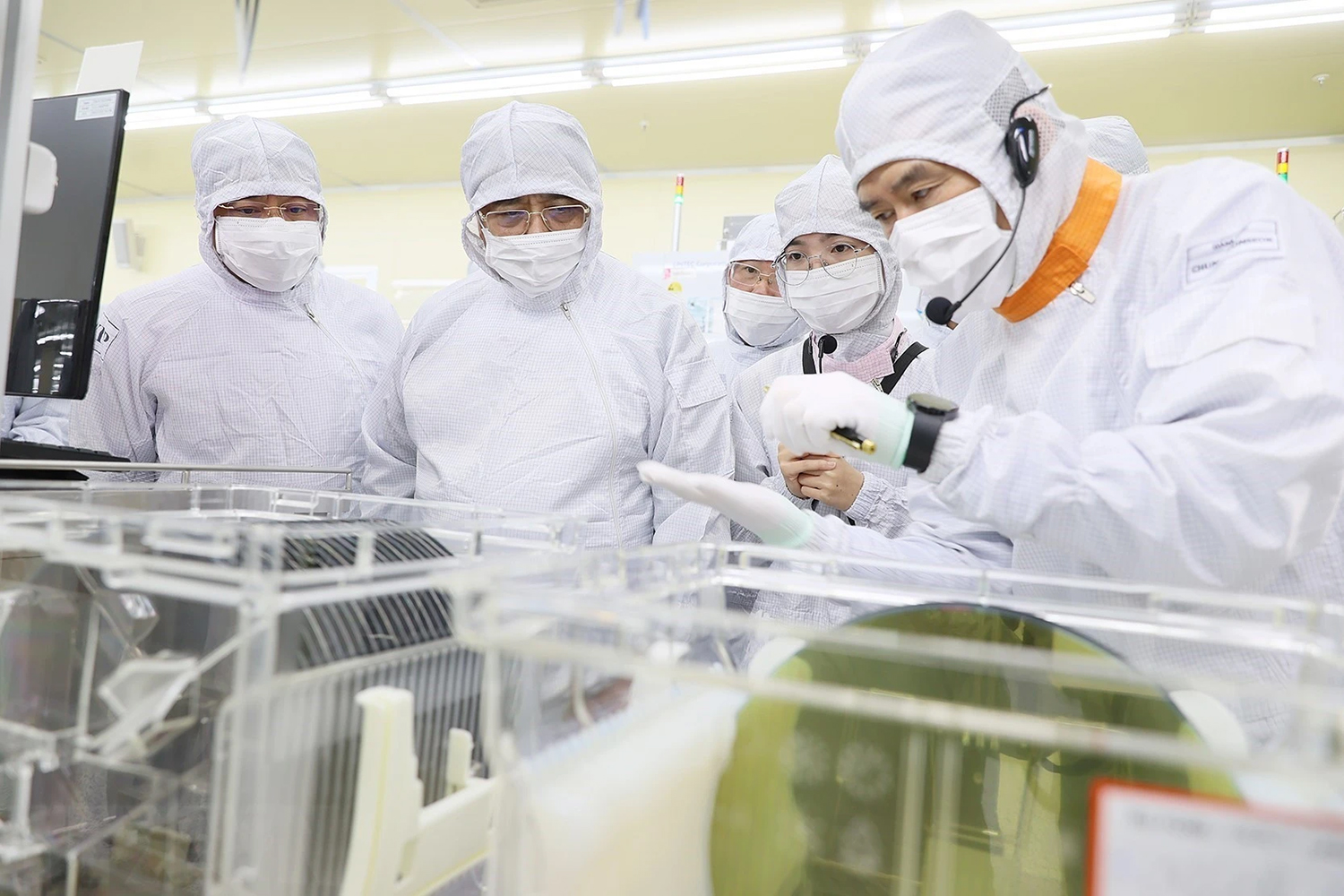 Ủy viên Bộ Chính trị, Thủ tướng Chính phủ Phạm Minh Chính thăm dây chuyền sản xuất chíp bán dẫn của Công ty TNHH Hana Micro Vina.(Hàn Quốc) tại Khu công nghiệp Vân Trung, xã Vân Trung, huyện Việt Yên, tỉnh Bắc Giang _Nguồn: vietnamplus.vn