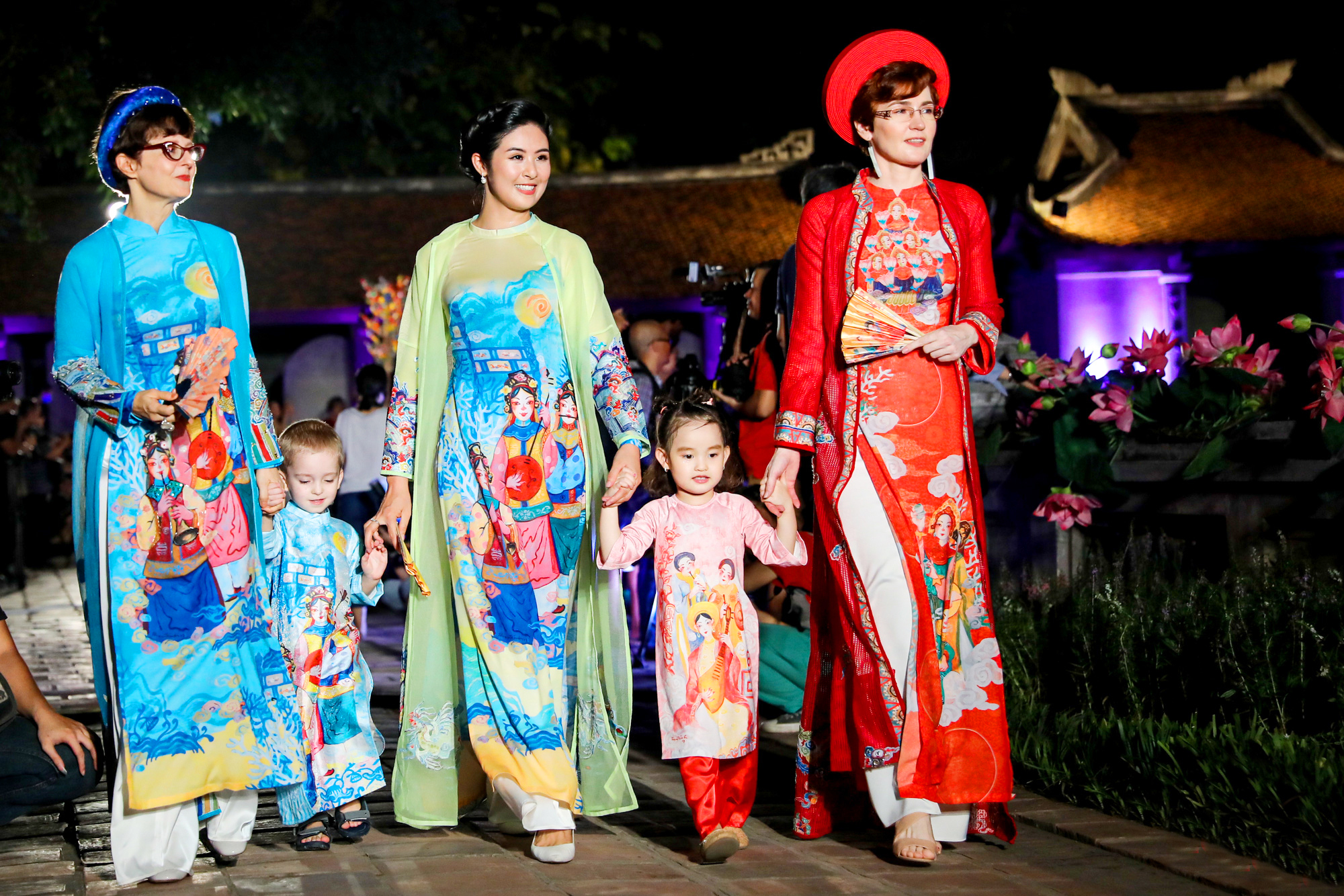 Trình diễn áo dài trong Chương trình Áo dài - Di sản văn hóa Việt Nam tại Di tích quốc gia đặc biệt Văn Miếu - Quốc Tử Giám _Nguồn: toquoc.vn