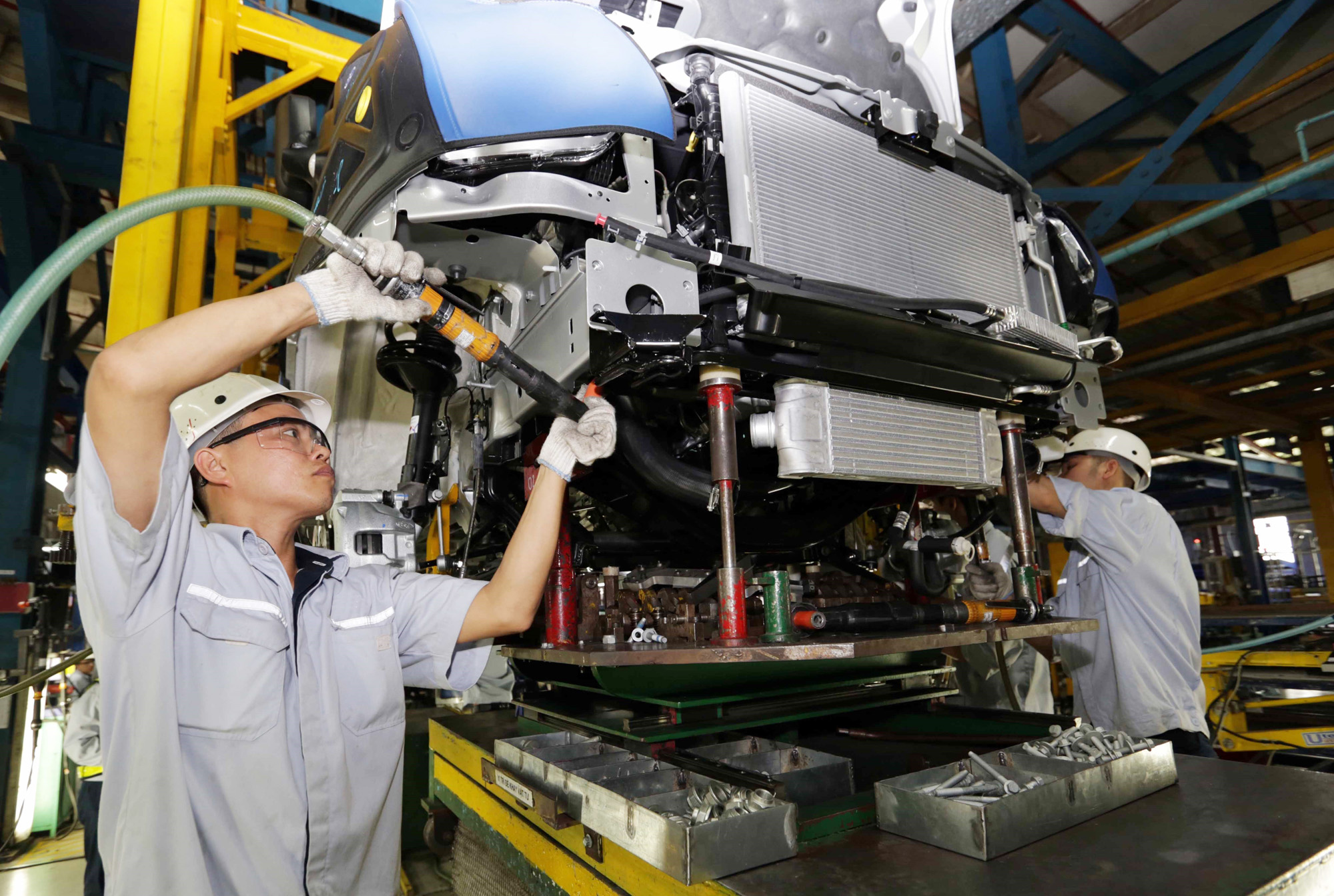 Chăm lo phát triển giai cấp công nhân vững mạnh xứng đáng với vai trò giai cấp lãnh đạo cách mạng; có đủ năng lực làm chủ nhà máy, công xưởng, hầm mỏ; tạo nhiều của cải vật chất cho xã hội (Trong ảnh: Lắp ráp ô tô tại nhà máy của Công ty Ford Việt Nam, tỉnh Hải Dương) _Ảnh: TTXVN