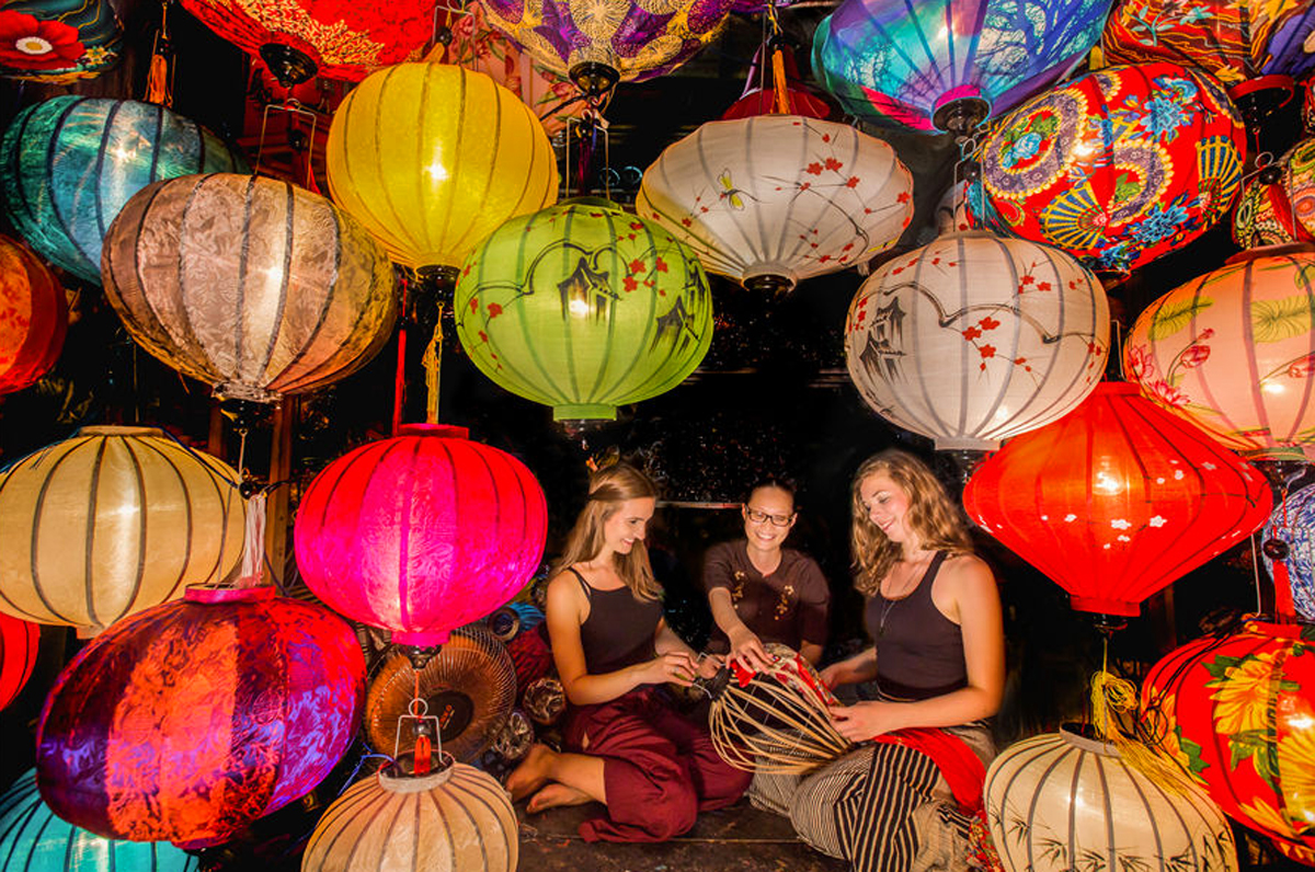 Du khách tham quan làng nghề làm đèn lồng ở phố cổ Hội An _Nguồn: nhiepanhdoisong.vn