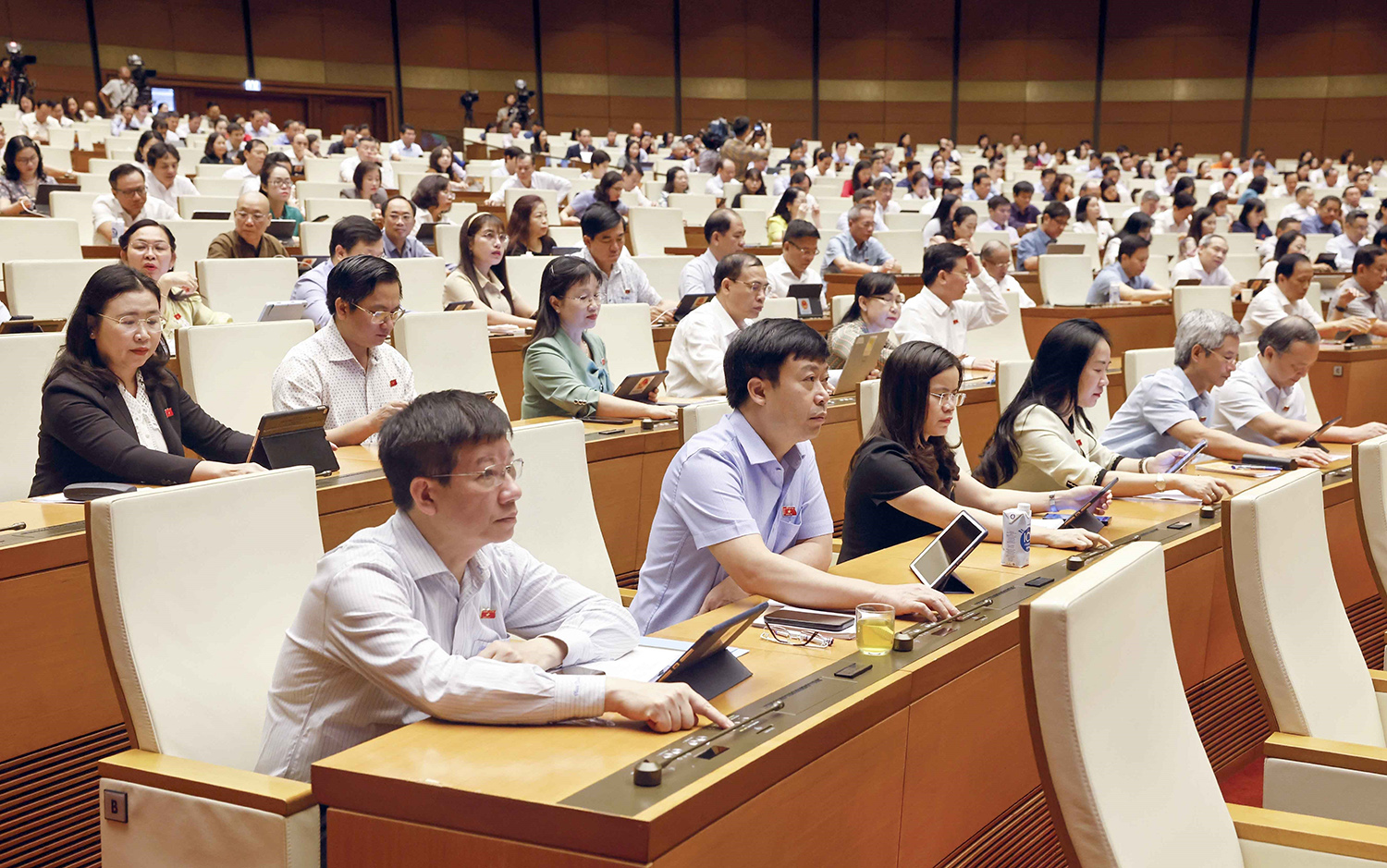 Các đại biểu Quốc hội biểu quyết thông qua Luật Trật tự, an toàn giao thông đường bộ tại Kỳ họp thứ 7, Quốc hội khóa XIV _Ảnh: TTXVN