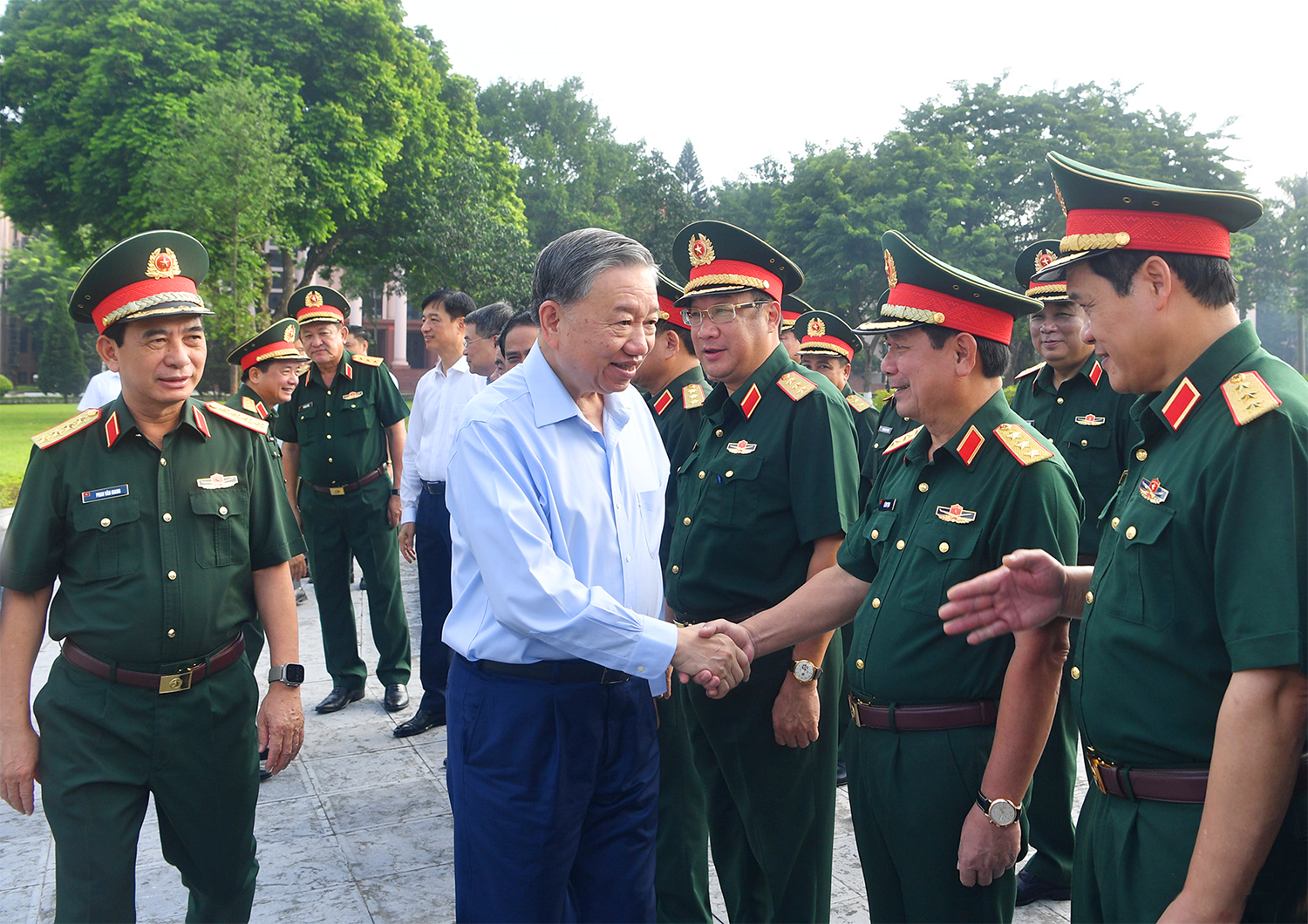 Tổng Bí thư, Chủ tịch nước Tô Lâm, Bí thư Quân ủy Trung ương thăm và làm việc với Ban Thường vụ Quân ủy Trung ương _Nguồn: qdnd.vn