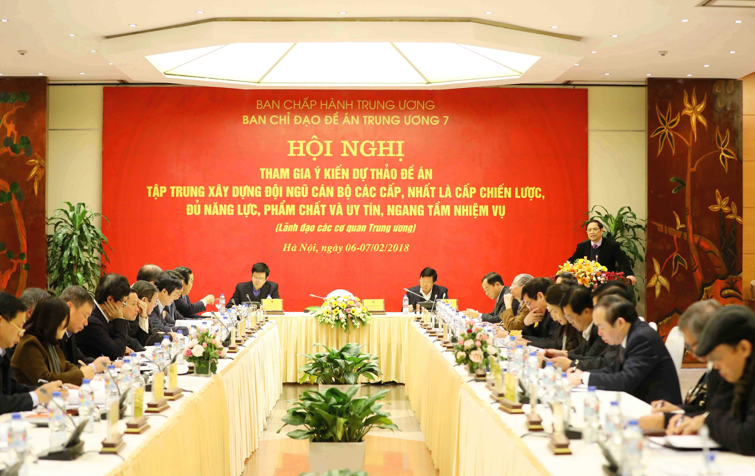 Đồng chí Phạm Minh Chính, Ủy viên Bộ Chính trị, Bí thư Trung ương Đảng, Trưởng Ban Tổ chức Trung ương chủ trì Hội nghị tham gia ý kiến cho dự thảo đề cương Đề án “Tập trung xây dựng đội ngũ cán bộ các cấp, nhất là cấp chiến lược đủ năng lực, phẩm chất và uy tín, ngang tầm nhiệm vụ”, tháng 2-2018 _Nguồn: vietnamplus.vn