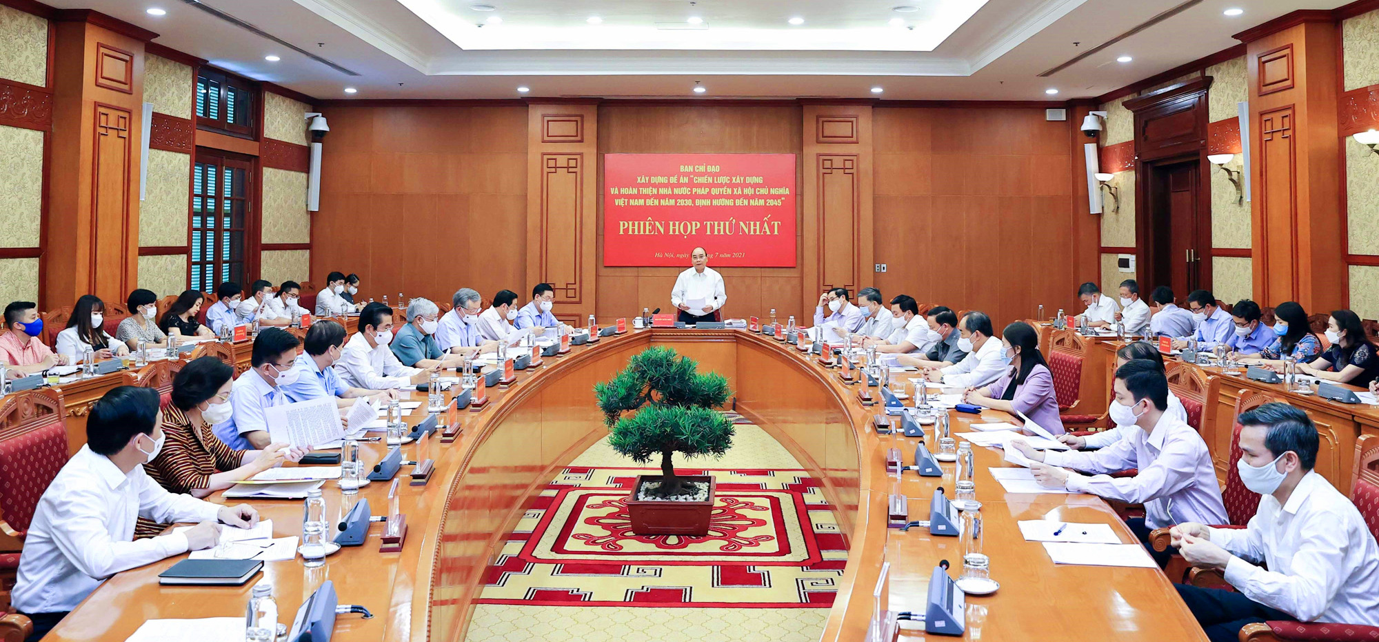 Ủy viên Bộ Chính trị, Chủ tịch nước Nguyễn Xuân Phúc phát biểu khai mạc Phiên họp thứ nhất của Ban Chỉ đạo xây dựng Đề án “Chiến lược xây dựng và hoàn thiện Nhà nước pháp quyền xã hội chủ nghĩa Việt Nam đến năm 2030, định hướng đến năm 2045” _Ảnh: Tư liệu