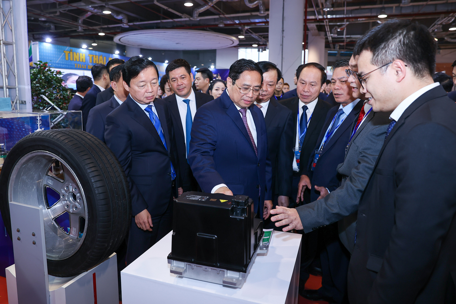 Ủy viên Bộ Chính trị, Thủ tướng Chính phủ Phạm Minh Chính tham quan các gian hàng trưng bày sản phẩm công nghiệp, nông nghiệp, thủ công, mỹ nghệ của các tỉnh đồng bằng sông Hồng tại tỉnh Quảng Ninh _Ảnh: TTXVN