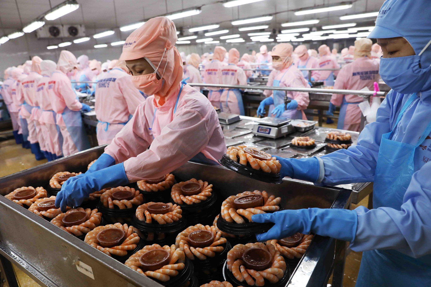 Chế biến tôm xuất khẩu sang các thị trường Trung Quốc, Mỹ, Nhật Bản... _Ảnh: TTXVN