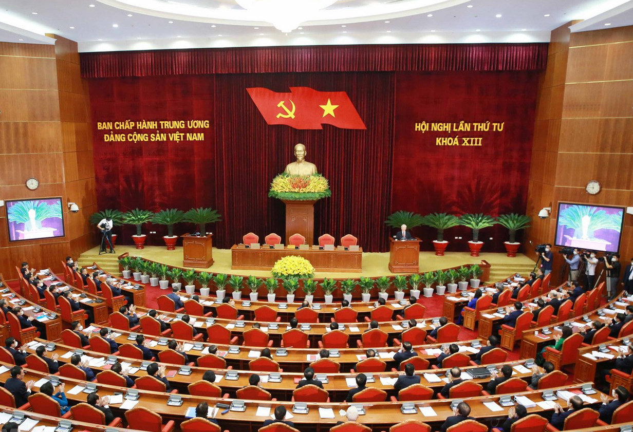 Với tinh thần đó, tôi xin tuyên bố bế mạc Hội nghị lần thứ tư Ban Chấp hành Trung ương Đảng khóa XIII. Chúc các đồng chí mạnh khoẻ, hoàn thành tốt trọng trách của mình trước Đảng, trước nhân dân và đất nước, góp phần tiếp tục làm vẻ vang cho dân tộc, cho giống nòi.