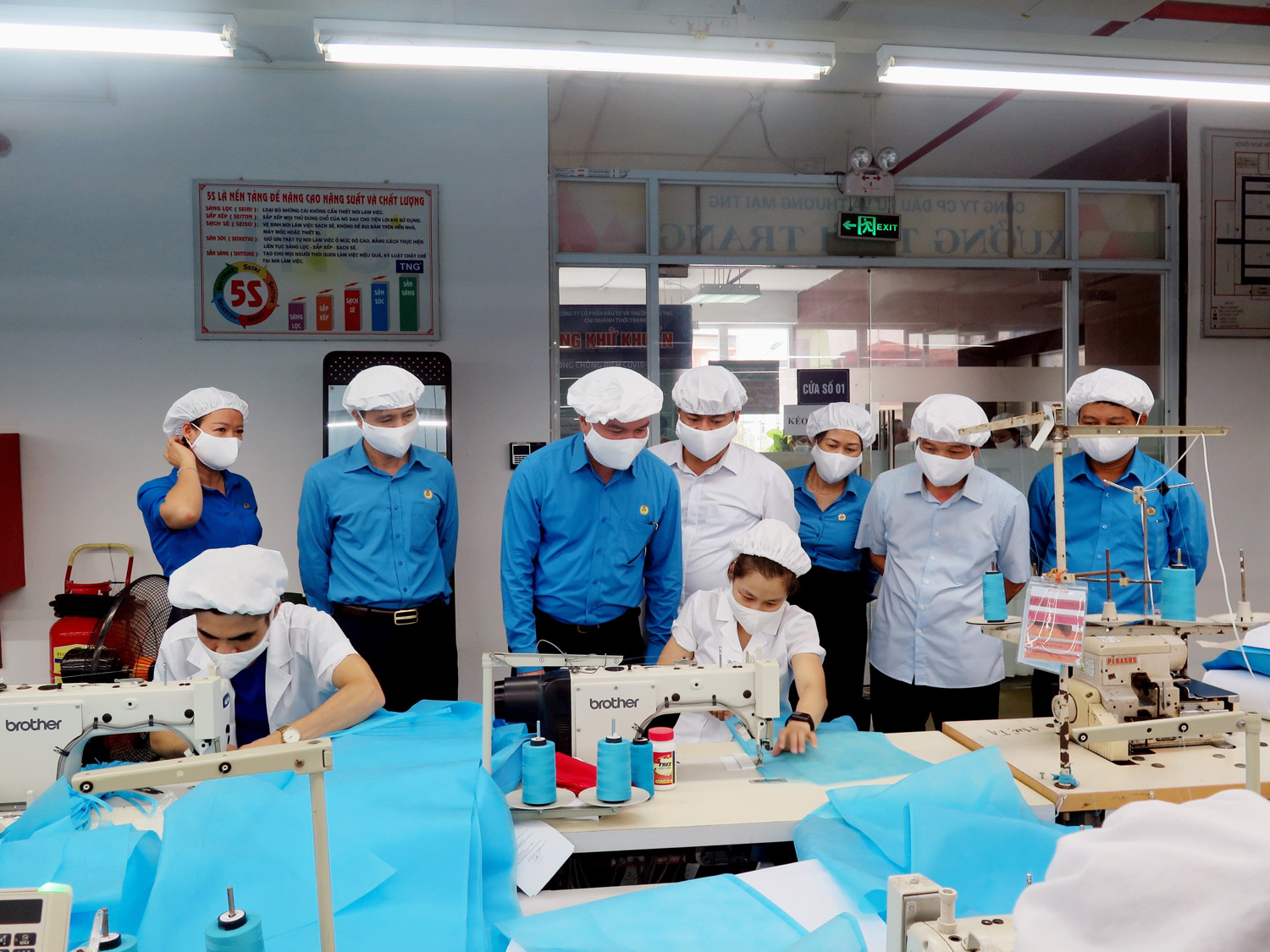 Ủy viên Trung ương Đảng, Chủ tịch Tổng Liên đoàn Lao động Việt Nam Nguyễn Đình Khang thăm hỏi công nhân làm việc tại Công ty cổ phần Đầu tư và Thương mại TNG _Ảnh: TTXVN