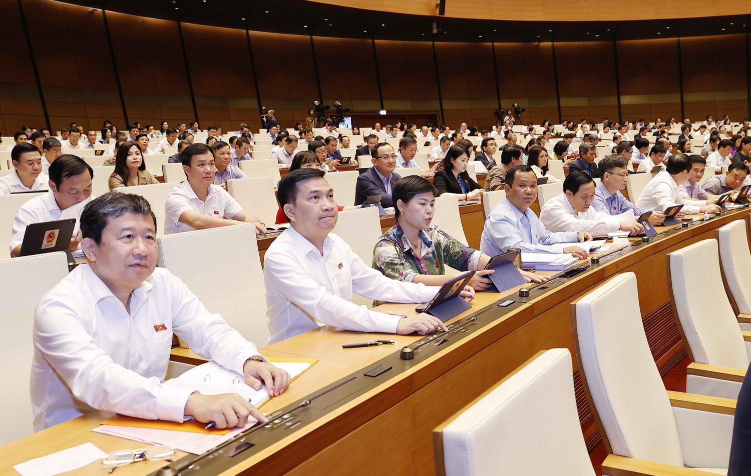 Các đại biểu Quốc hội biểu quyết thông qua Luật Thanh tra (sửa đổi) tại Kỳ họp thứ tư, Quốc hội khóa XV _Ảnh: TTXVN