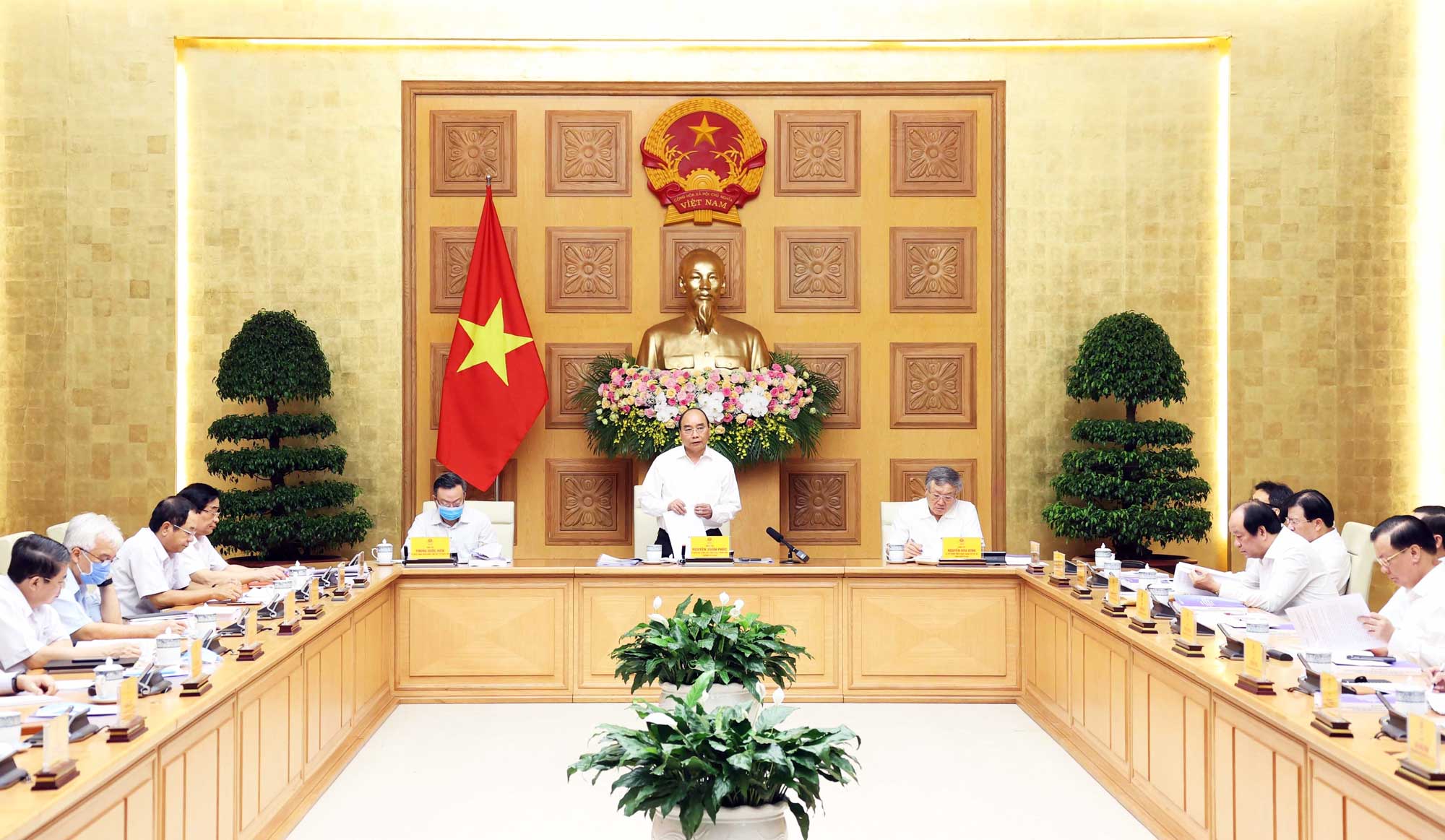 Phát biểu khai mạc phiên họp, Thủ tướng cho biết, từ đầu năm 2020, đại dịch COVID-19 đã ảnh hưởng đến toàn cầu, các tổ chức quốc tế dự báo tình hình tiếp tục xấu hơn thời gian tới, cả về dịch bệnh và kinh tế. Các nước đang hành động quyết liệt để hỗ trợ người dân và vực dậy nền kinh tế với tổng các gói hỗ trợ khoảng 14.000 tỷ USD, đồng thời khiến thâm hụt ngân sách gia tăng, bình quân toàn cầu lên đến 14% GDP. Đối với nước ta, dịch bệnh khiến kinh tế bị ảnh hưởng nặng nề. Quý II/2020, kinh tế chỉ tăng trưởng 0,36%, thấp nhất trong 30 năm qua. Tính chung nửa năm, kinh tế chỉ tăng trưởng 1,81%.