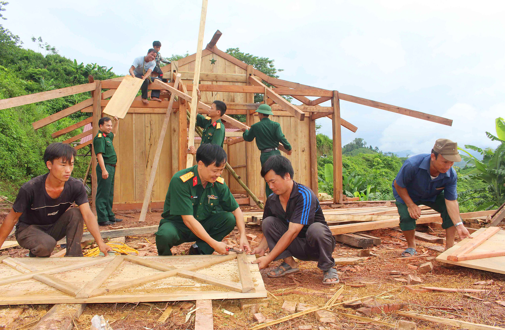 Cán bộ, chiến sĩ Bộ Chỉ huy Quân sự tỉnh Điện Biên giúp đồng bào xã Mường Toong, huyện Mường Nhé dựng nhà _Nguồn: quankhu2.vn