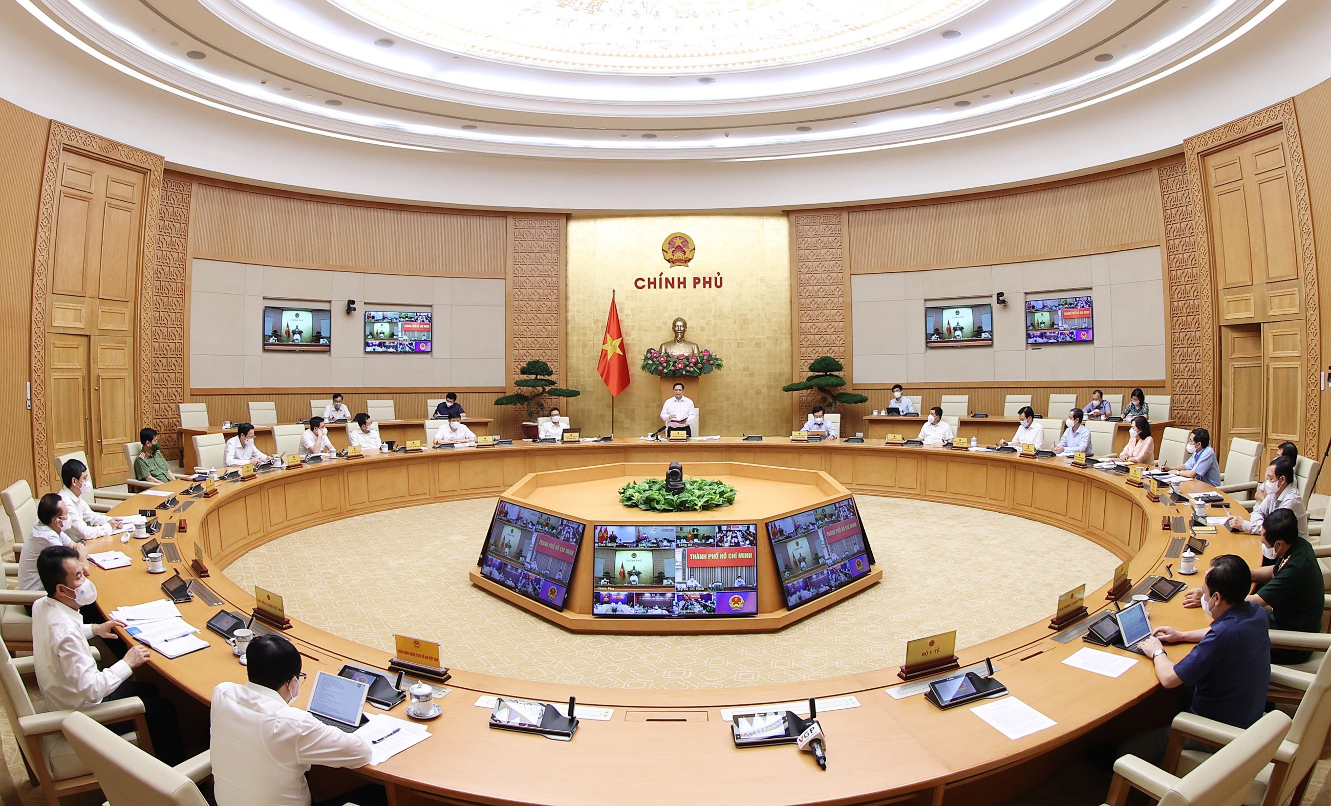 Phát biểu kết luận cuộc họp, Thủ tướng nhấn mạnh, cùng với Hà Nội, Thành phố Hồ Chí Minh là trung tâm kinh tế, chính trị, văn hóa, giáo dục của cả vùng kinh tế trọng điểm phía Nam và của cả nước. Do đó, tình hình dịch bệnh tại Thành phố có ảnh hưởng lớn đến các tỉnh trong khu vực, đồng thời việc phòng, chống dịch cũng khó khăn, phức tạp hơn, đòi hỏi phải tập trung ưu tiên chỉ đạo, xử lý. Chính phủ chỉ đạo các bộ, ngành đã và đang bổ sung lực lượng cho Thành phố Hồ Chí Minh và một số tỉnh phía Nam, đồng thời yêu cầu các ngành y tế, quân đội, công an, các tỉnh, thành phố không có dịch và dịch đã được kiểm soát tốt tiếp tục chi viện cho những địa phương nếu cần thiết.