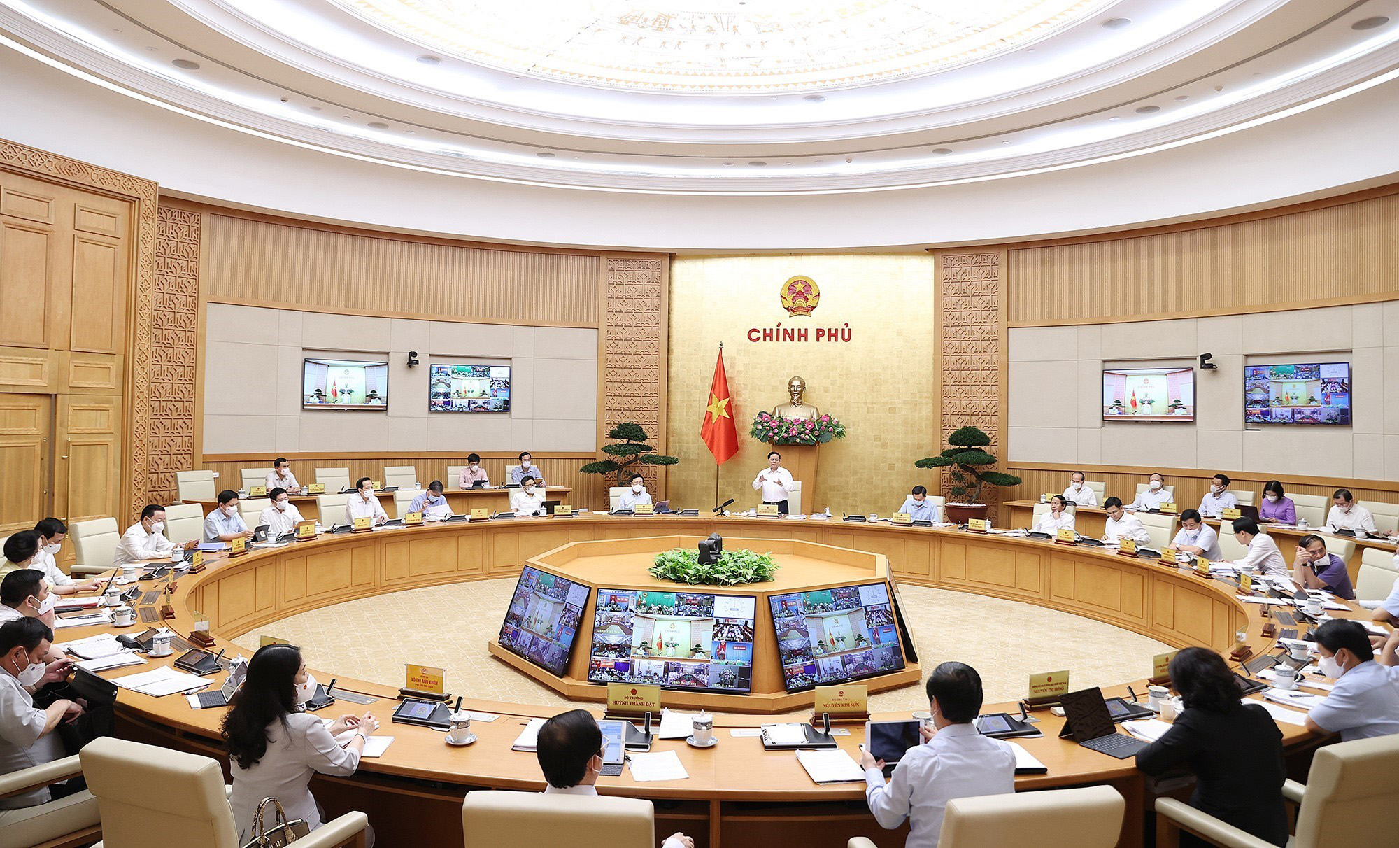 Trước khi họp phiên thường kỳ, Chính phủ đã dành thời gian họp trực tuyến với 63 tỉnh, thành phố và 705 huyện, thị xã, thành phố trong cả nước về công tác phòng, chống dịch COVID-19; bàn giải pháp “thích ứng an toàn, linh hoạt, kiểm soát hiệu quả dịch COVID-19”.