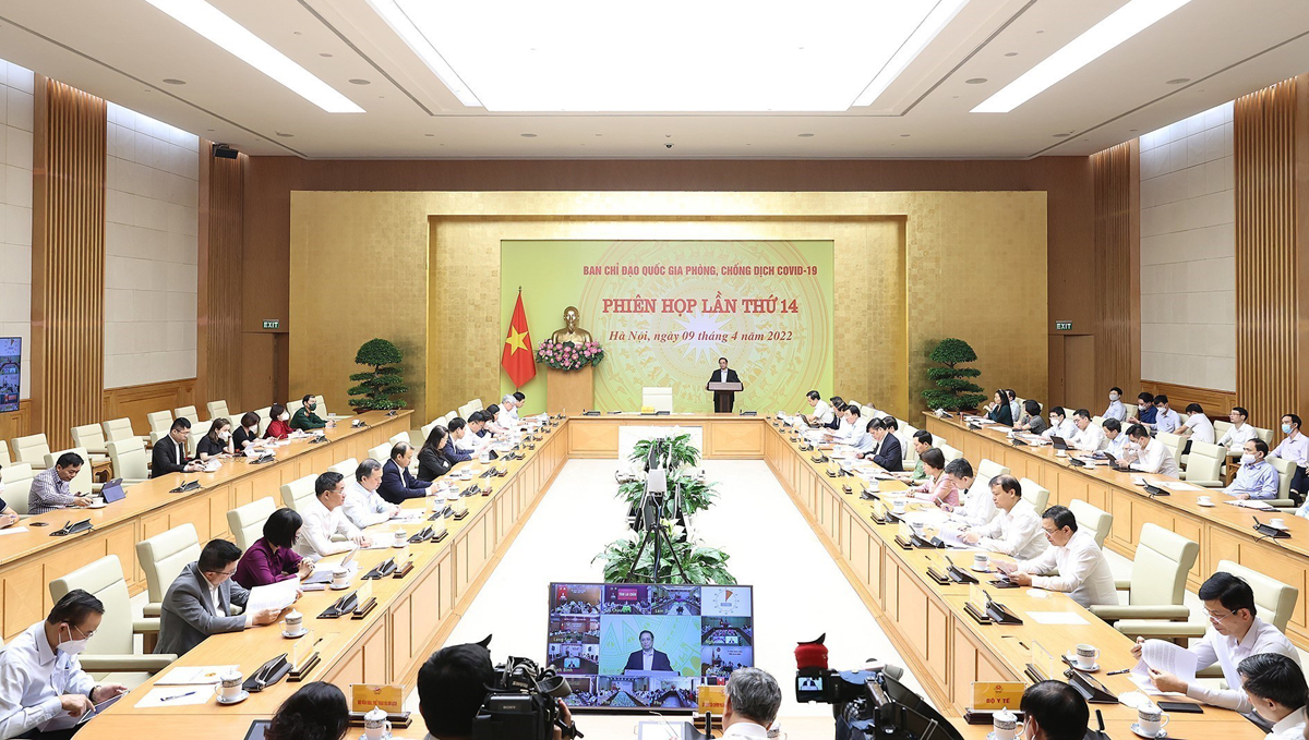 TCCS – Ngày 9-4-2022, Ủy viên Bộ Chính trị, Thủ tướng Chính phủ Phạm Minh Chính, Trưởng Ban Chỉ đạo quốc gia phòng, chống dịch COVID-19 (Ban Chỉ đạo) chủ trì phiên họp thứ 14 của Ban Chỉ đạo về công tác phòng, chống dịch COVID-19. Phiên họp được tổ chức trực tuyến với 63 tỉnh, thành phố trực thuộc Trung ương.