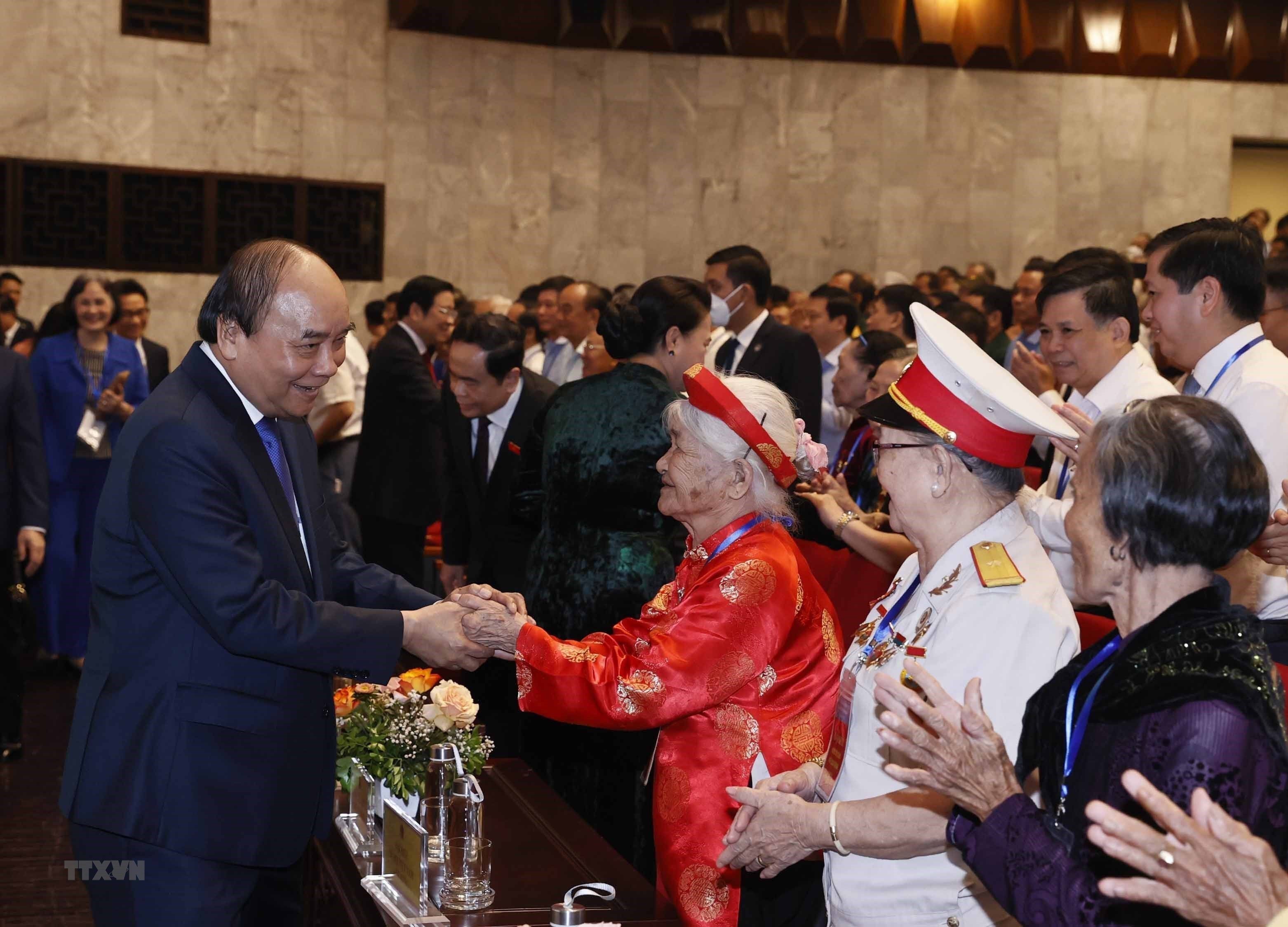 Tại buổi lễ, Chủ tịch nước Nguyễn Xuân Phúc và các đồng chí lãnh đạo Đảng, Nhà nước tặng quà đại diện đại biểu người có công với cách mạng, tặng hoa các Mẹ Việt Nam Anh hùng.