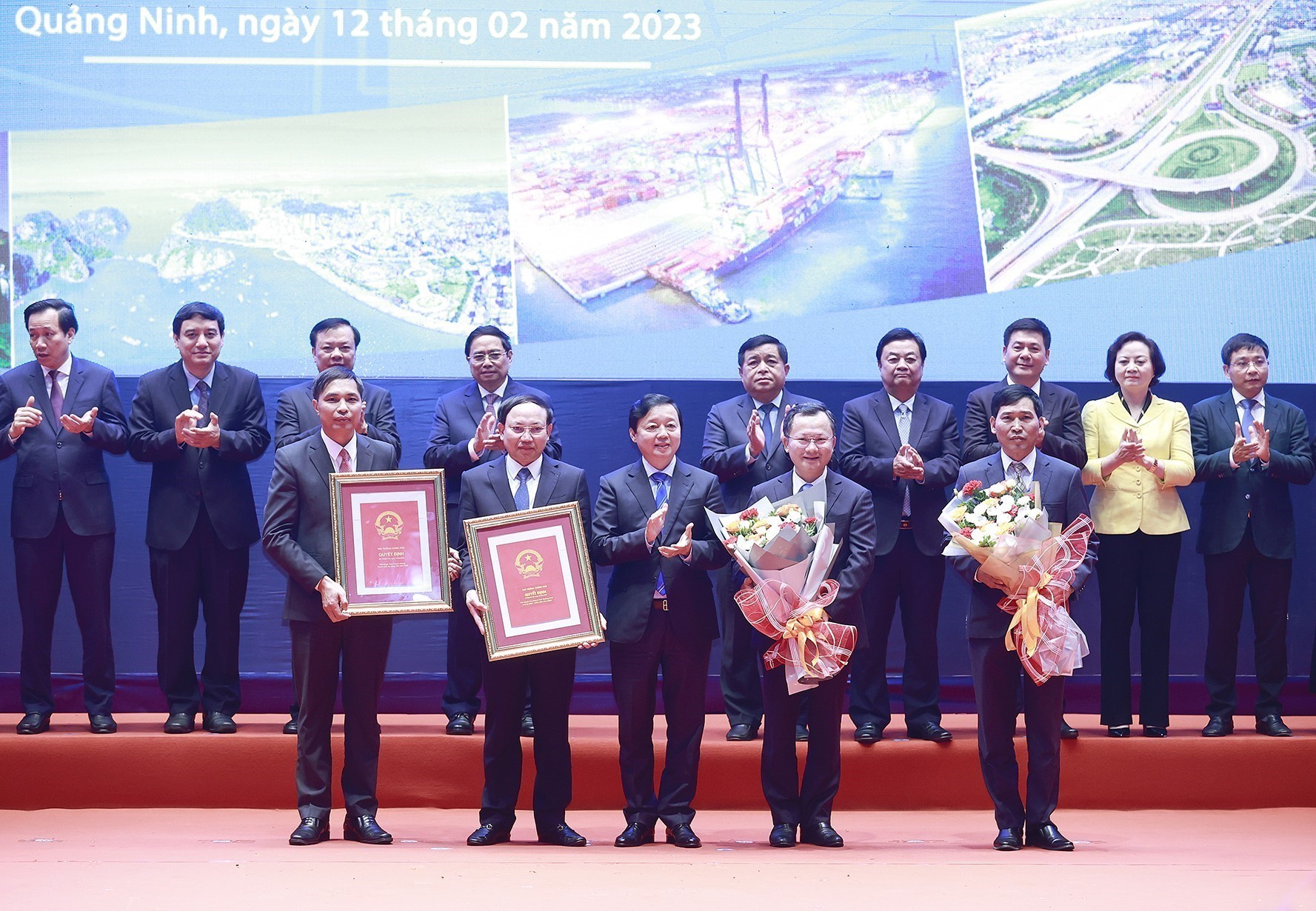 TCCS - Ngày 12-2-2023, tại tỉnh Quảng Ninh, Ủy viên Bộ Chính trị, Thủ tướng Chính phủ Phạm Minh Chính chủ trì Hội nghị triển khai Chương trình hành động của Chính phủ thực hiện Nghị quyết số 30-NQ/TW, ngày 23-11-2022, của Bộ Chính trị về phương hướng phát triển kinh tế - xã hội, bảo đảm quốc phòng, an ninh vùng đồng bằng sông Hồng đến năm 2030, tầm nhìn đến năm 2045 và Xúc tiến đầu tư vùng, với chủ đề “Liên kết phát triển - Đổi mới sáng tạo - Xanh và bền vững”.
