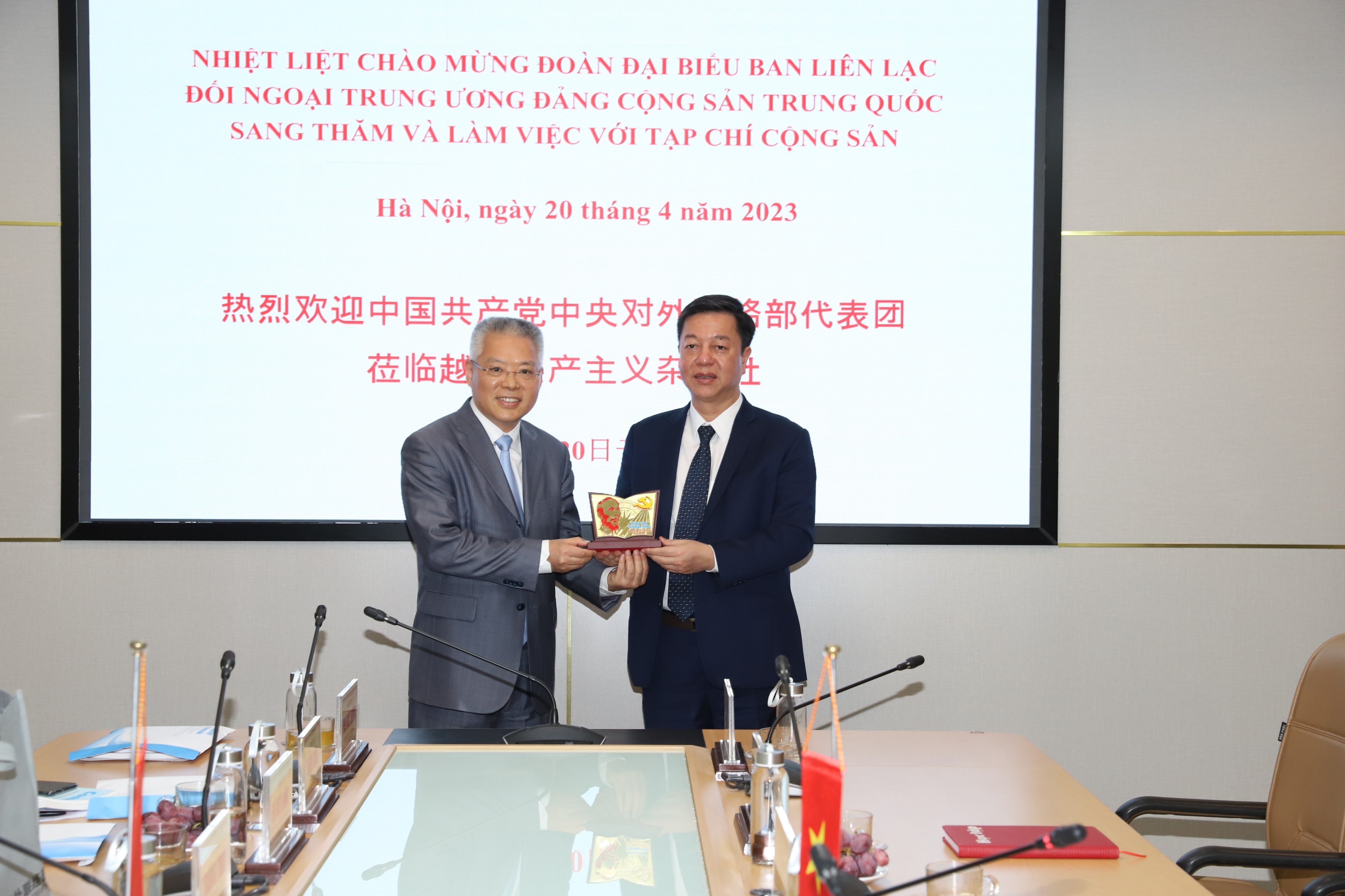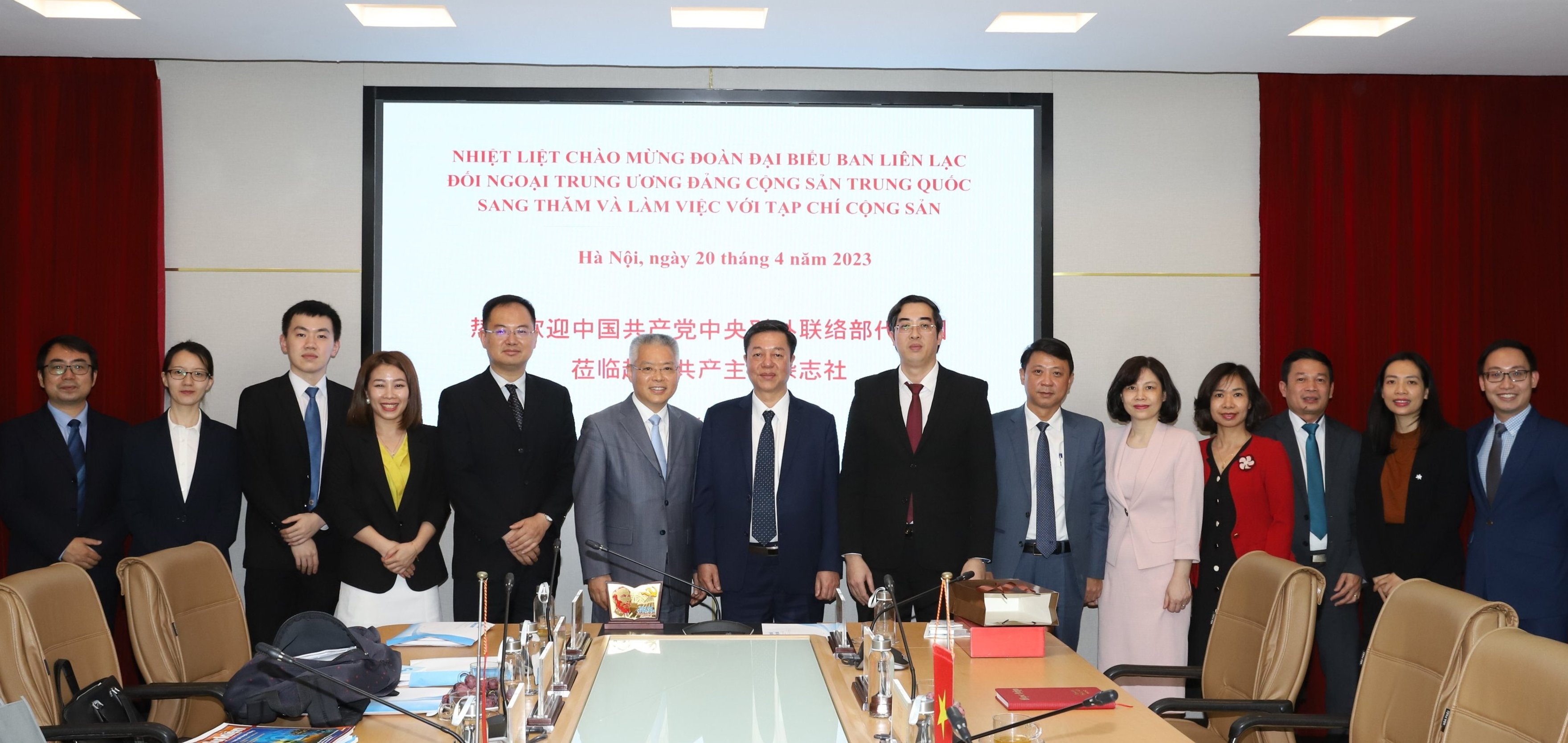 TCCS - Ngày 20-4-2023, tại trụ sở Bộ Biên tập Tạp chí Cộng sản, Ban Biên tập Tạp chí Cộng sản đón tiếp và làm việc với Đoàn đại biểu Ban Liên lạc Đối ngoại Trung ương Đảng Cộng sản Trung Quốc.