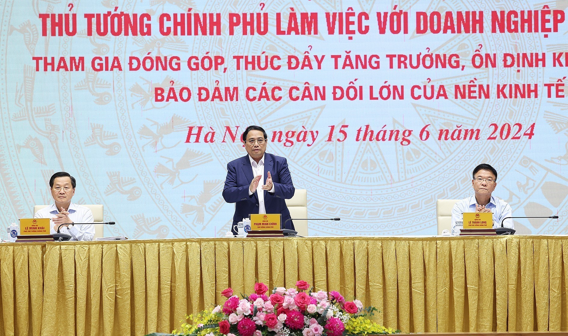 TCCS - Ngày 15-6-2024, Ủy viên Bộ Chính trị, Thủ tướng Chính phủ Phạm Minh Chính chủ trì Hội nghị Thủ tướng Chính phủ với doanh nghiệp nhà nước, với chủ đề “Doanh nghiệp nhà nước tham gia đóng góp, thúc đẩy tăng trưởng, ổn định kinh tế vĩ mô, bảo đảm các cân đối lớn của nền kinh tế”.