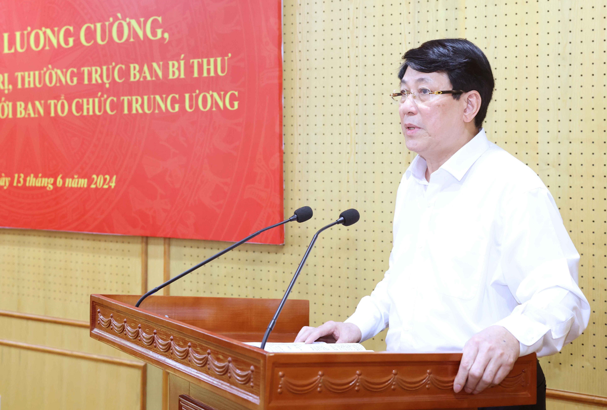 Phát biểu tại buổi làm việc, Thường trực Ban Bí thư khẳng định, từ đầu nhiệm kỳ đến nay, trong bối cảnh có nhiều thuận lợi và thách thức đan xen, Ban Tổ chức Trung ương đã phát huy tinh thần đoàn kết, nỗ lực phấn đấu, khắc phục khó khăn, tham mưu hoàn thành một khối lượng lớn công việc với chất lượng ngày càng được nâng lên, trong đó có nhiều nhiệm vụ hoàn thành tốt và xuất sắc.