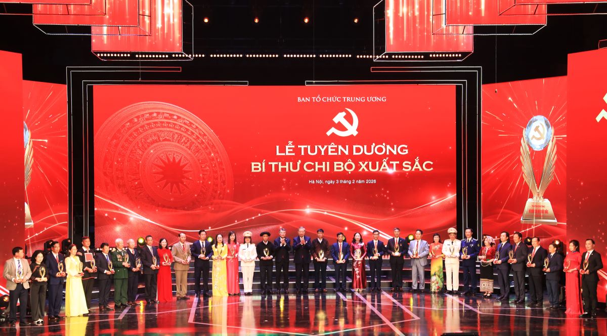TCCS - Nhân dịp kỷ niệm 96 năm Ngày thành lập Đảng Cộng sản Việt Nam, chào mừng thành công Đại hội XIV của Đảng, chào đón Xuân mới Bính Ngọ 2026, ngày 3-2-2026, tại Nhà hát Hồ Gươm - Hà Nội, Ban Tổ chức Trung ương chủ trì, phối hợp với Tạp chí Cộng sản, Báo Nhân dân, Đài Truyền hình Việt Nam, Hội Nhà báo Việt Nam tổ chức Lễ Tuyên dương bí thư chi bộ xuất sắc và công bố, trao Giải Búa liềm vàng lần thứ X - năm 2025. Tổng Bí thư Tô Lâm dự và phát biểu tại buổi lễ.