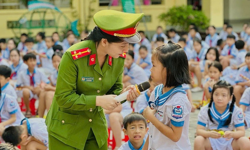 Công an tỉnh Hà Tĩnh tuyên truyền, cảnh báo cho học sinh về những thủ đoạn của tội phạm trên không gian mạng_Ảnh: baohatinh.vn