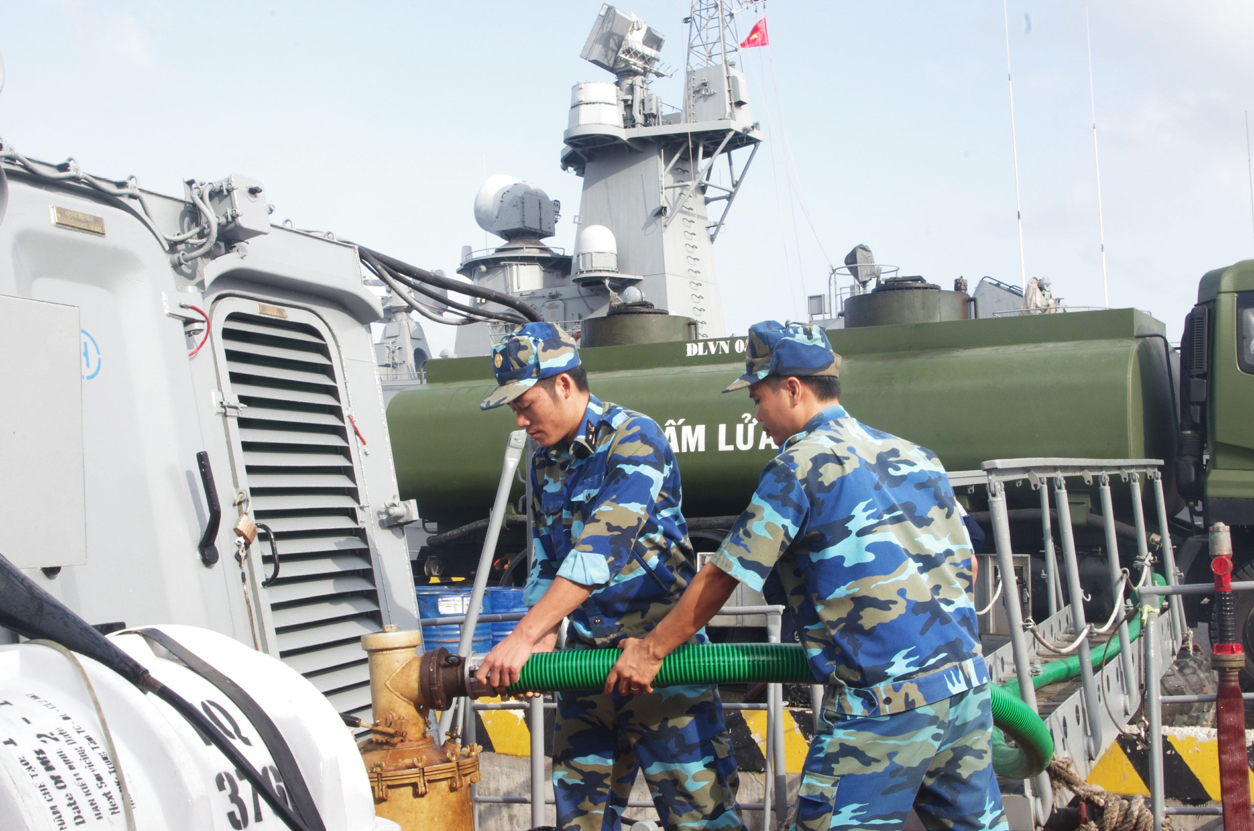 Cán bộ hậu cần quân đội bảo đảm nhiên liệu cho tàu hoạt động dài ngày trên biển tại Vùng 4 Hải quân_Nguồn: baohaiquanvietnam.vn