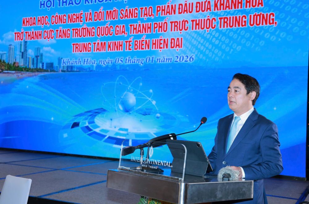 Thứ nhất, hội thảo làm rõ vai trò của khoa học và công nghệ, đổi mới sáng tạo đối với sự phát triển nhanh và bền vững của quốc gia cũng như của các địa phương, trong đó có Khánh Hòa. Nhiều tham luận đã luận giải, làm sâu sắc quan điểm của Đảng tại Nghị quyết số 57-NQ/TW của Bộ Chính trị: Phát triển khoa học, công nghệ, đổi mới sáng tạo và chuyển đổi số quốc gia là đột phá quan trọng hàng đầu, là động lực chính để phát triển nhanh lực lượng sản xuất hiện đại, hoàn thiện quan hệ sản xuất, đổi mới phương thức quản trị quốc gia, phát triển kinh tế - xã hội, ngăn chặn nguy cơ tụt hậu, đưa đất nước phát triển bứt phá, giàu mạnh trong kỷ nguyên mới.