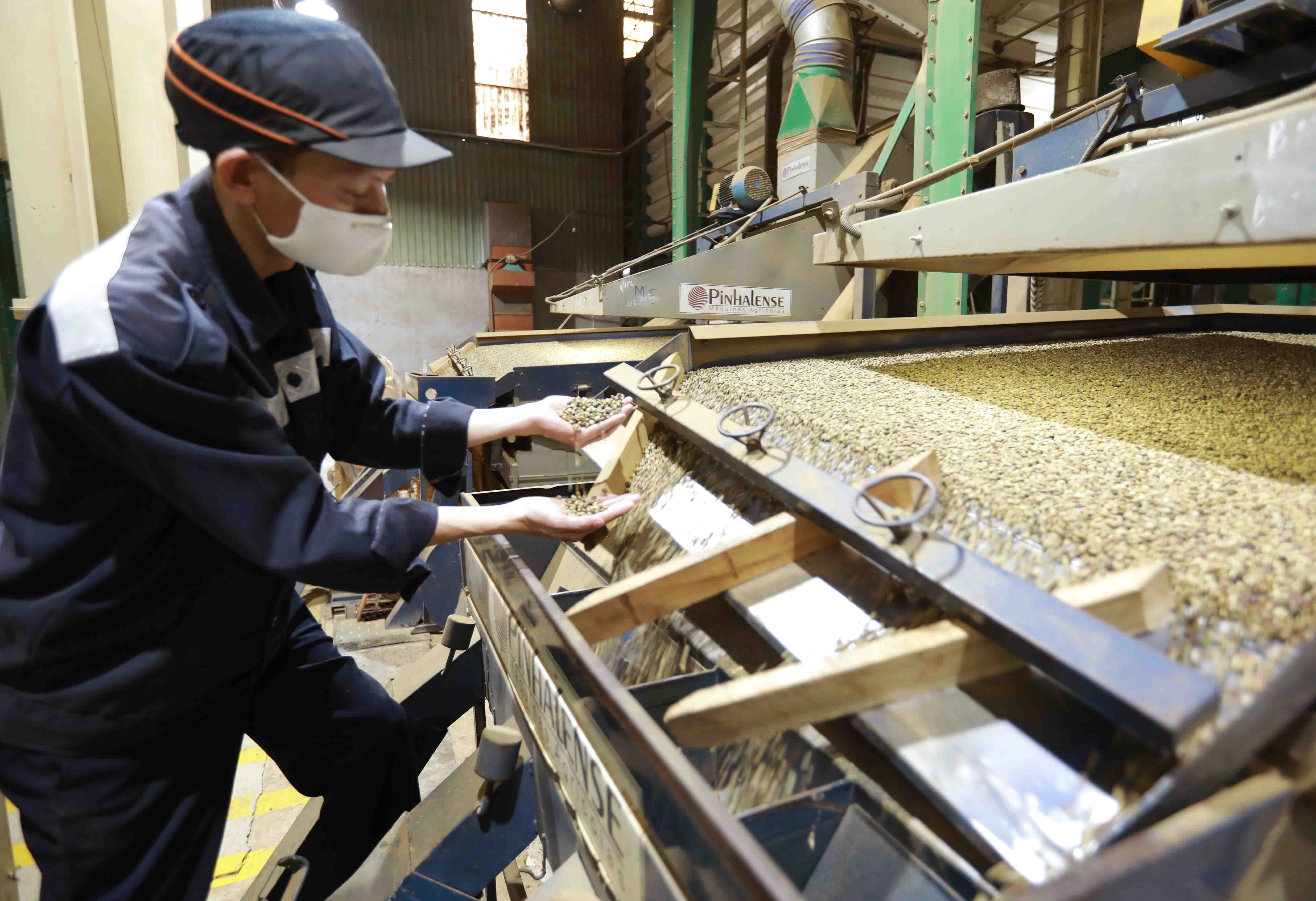 Chế biến cà phê xuất khẩu tại Công ty TNHH ĐắkMan ở phường Tân Hoà, thành phố Buôn Ma Thuột, tỉnh Đắk LắK_Ảnh: TTXVN