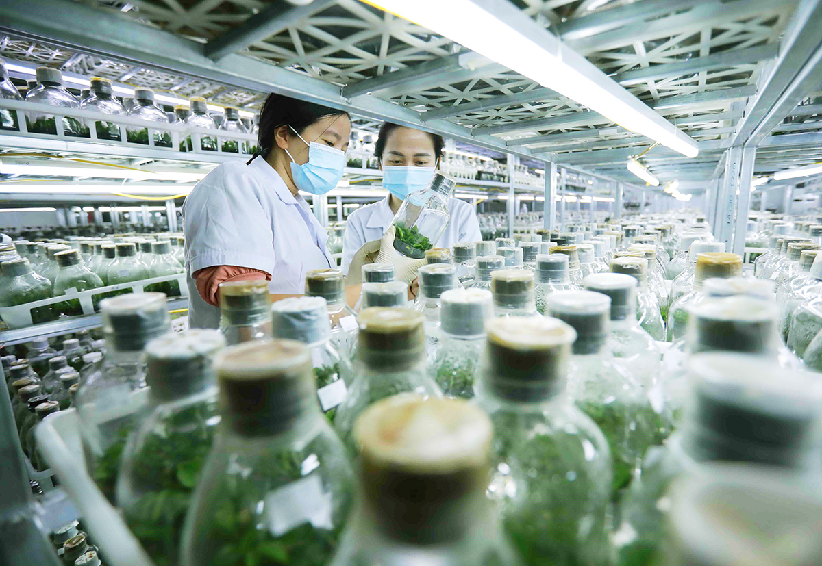 Thực hiện nghiên cứu, lai tạo giống cây trồng bằng phương pháp nuôi cấy mô tại Viện Khoa học Nông nghiệp Việt Nam _Ảnh: TTXVN