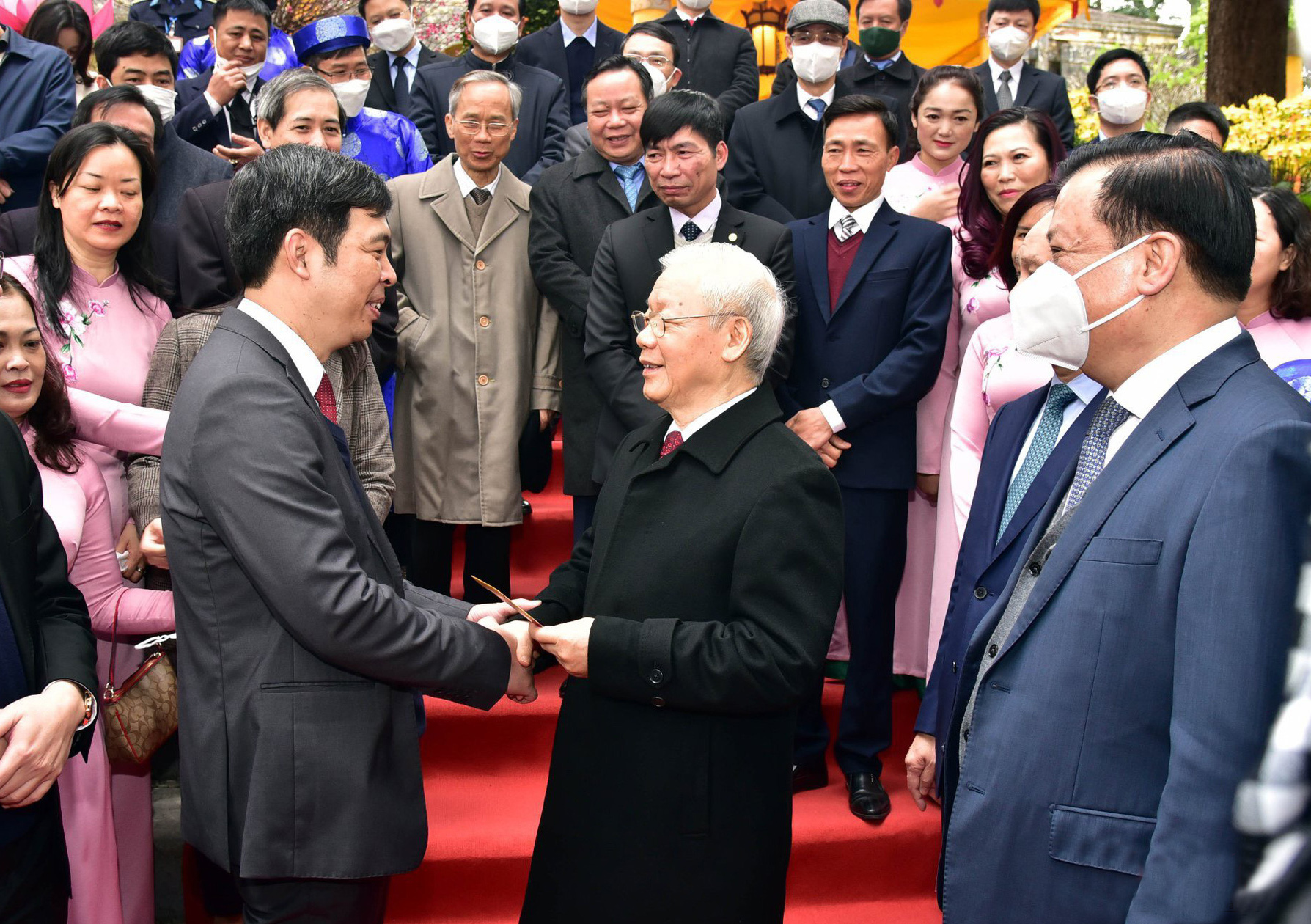 General Secretary Nguyen Phu Trong extending New Year greetings to officials and employees of Thang Long Imperial Citadel Heritage Area - a world cultural heritage in Hanoi with thousands of years of history, 4 Feb 2022 _Photo: toquoc.vn