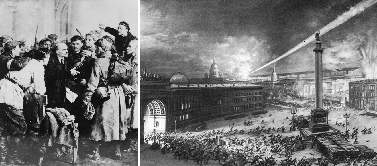 V.I. Lenin went to Smolny Palace to direct the armed uprising to overthrow the interim bourgeois government and establish the Soviet government (left photo). In the evening of 6th November 1917, the armed uprising took place (right photo)
