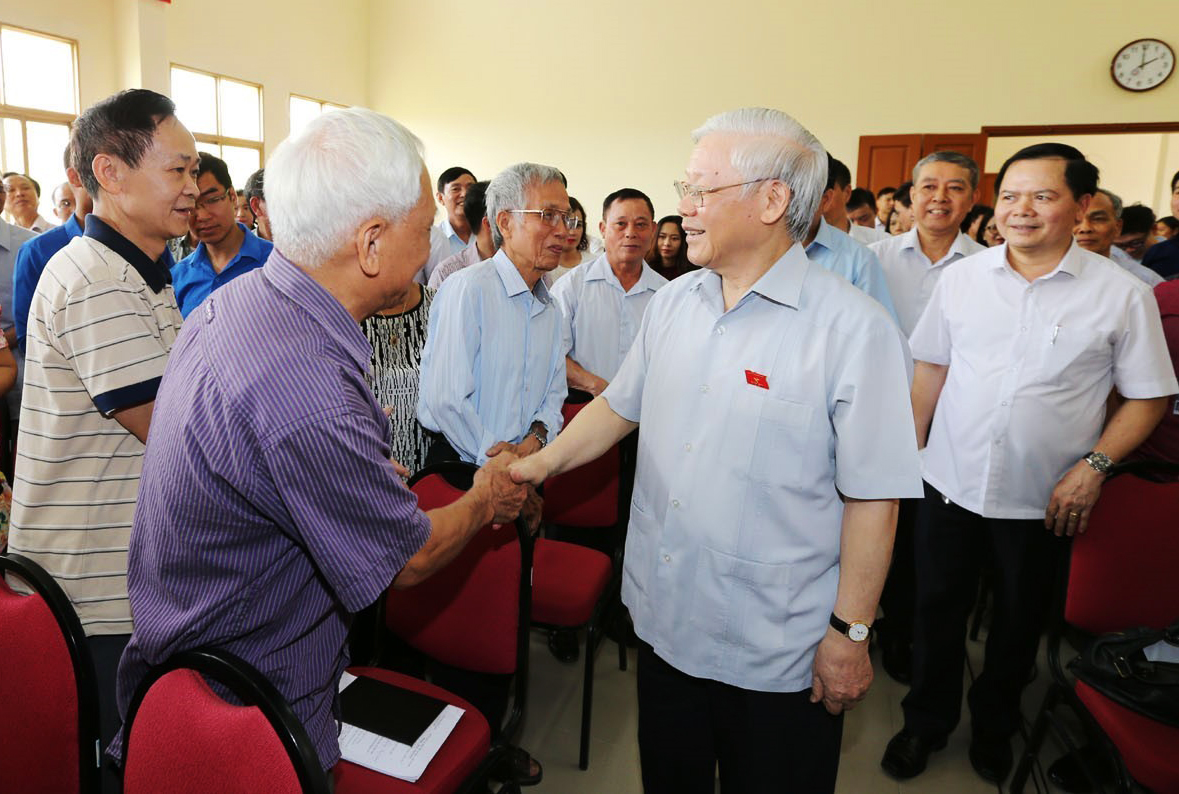 General Secretary Nguyen Phu Trong together with the deputies team No. 1 of the Hanoi National Assembly Deputies Mission contacts with the voters (May 2018) _Photo: vinanet.vn