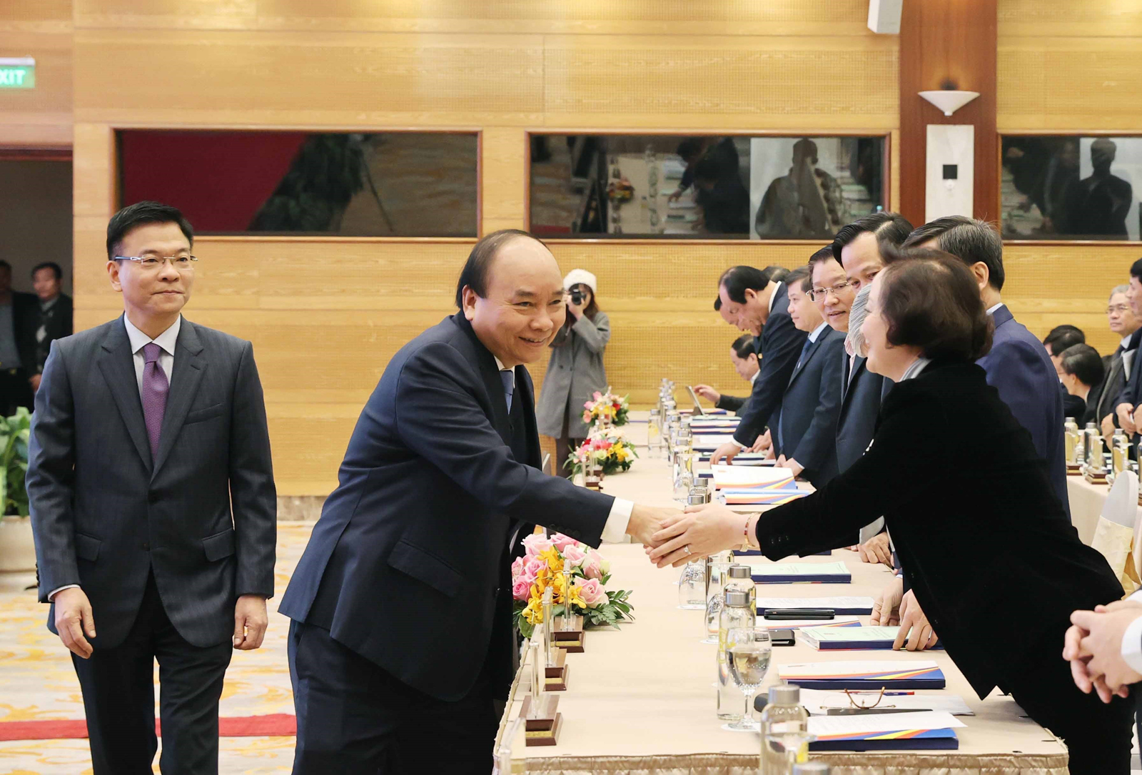 Politburo member, Prime Minister of the Government Nguyen Xuan Phuc with the delegates participating in the national online conference to implement the 2021 justice work, orientation of the 2021-2025 term (December 2020) _Photo: VNA