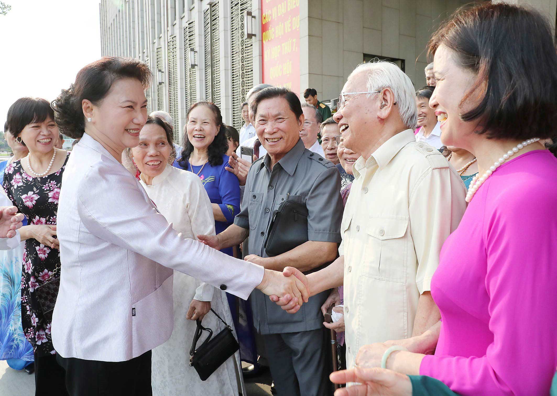 Politburo Member, National Assembly Chairwoman Nguyen Thi Kim Ngan with voters in Ba Dinh district, Hanoi city) _ Photo: VNA