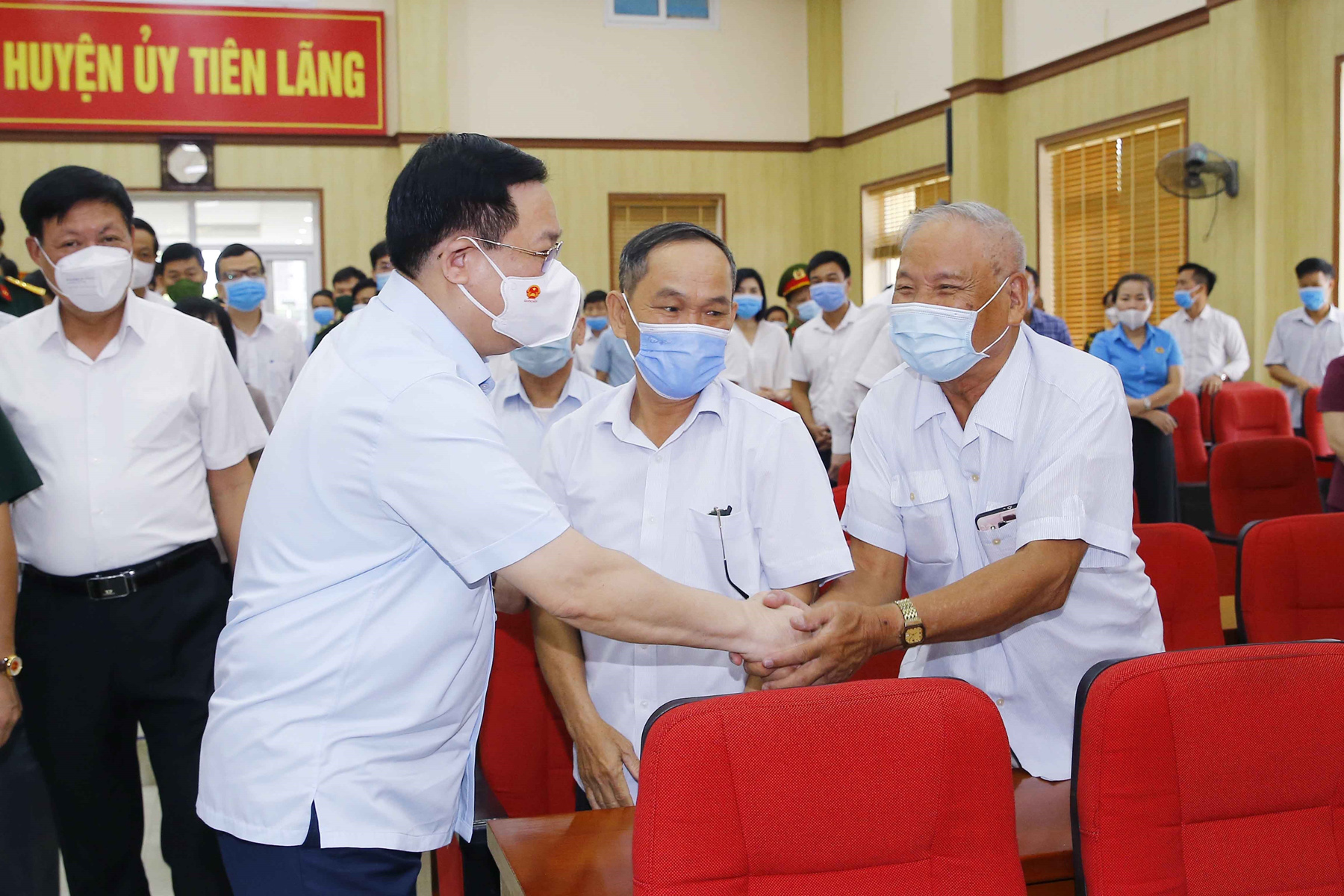 Politburo Member, Chairman of the National Assembly Vuong Dinh Hue and NA deputies of Hai Phong city meeting voters in Tien Lang district, before the second session of the 15th National Assembly _Photo: VNA