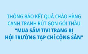 Thông báo kết quả chào hàng cạnh tranh rút gọn - Gói thầu "Mua sắm tivi trang bị cho hội trường"