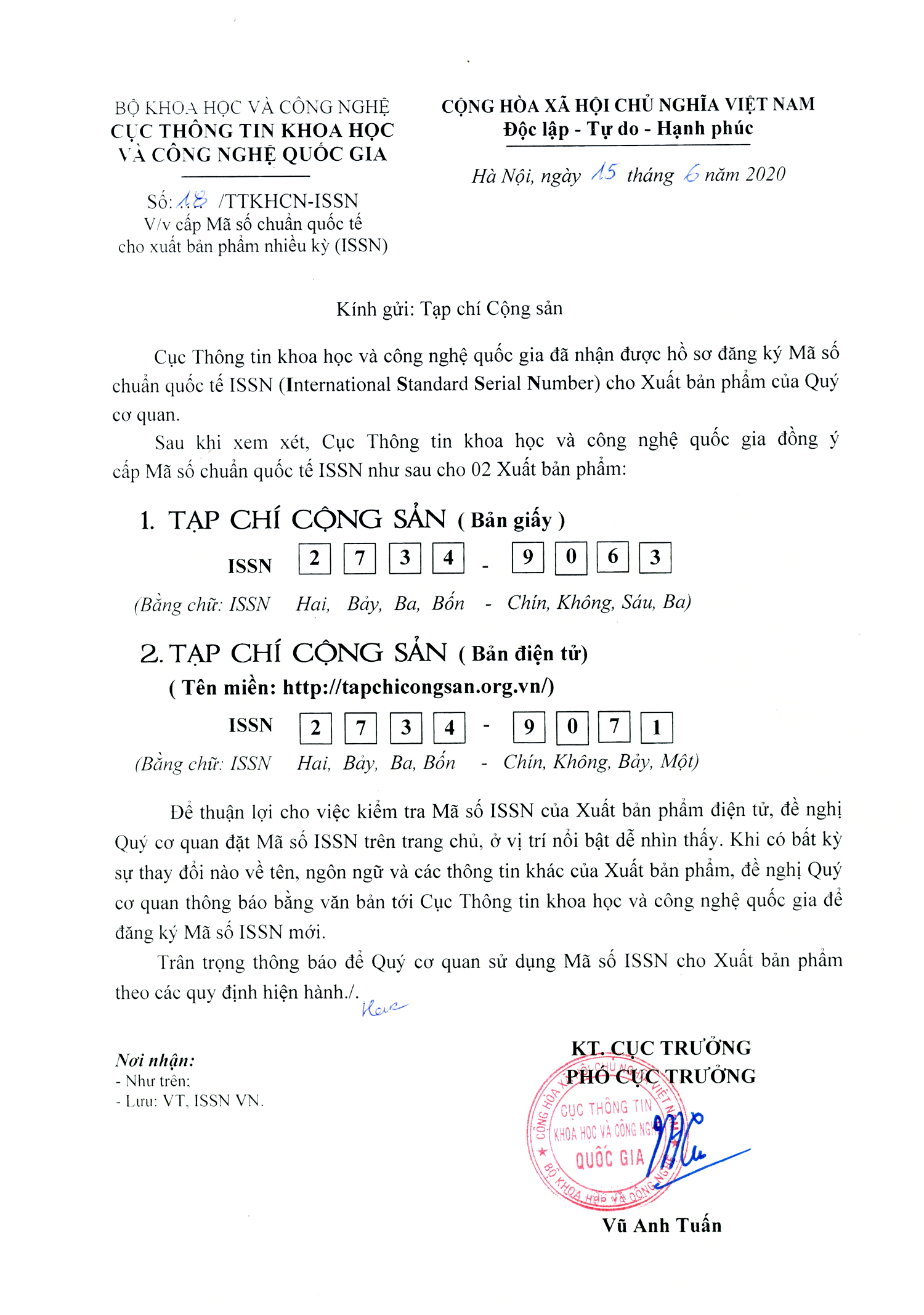 Mã số chuẩn quốc tế ISSN tính điểm khoa học trên Tạp chí Cộng sản điện tử (ISSN: 2734-9071)