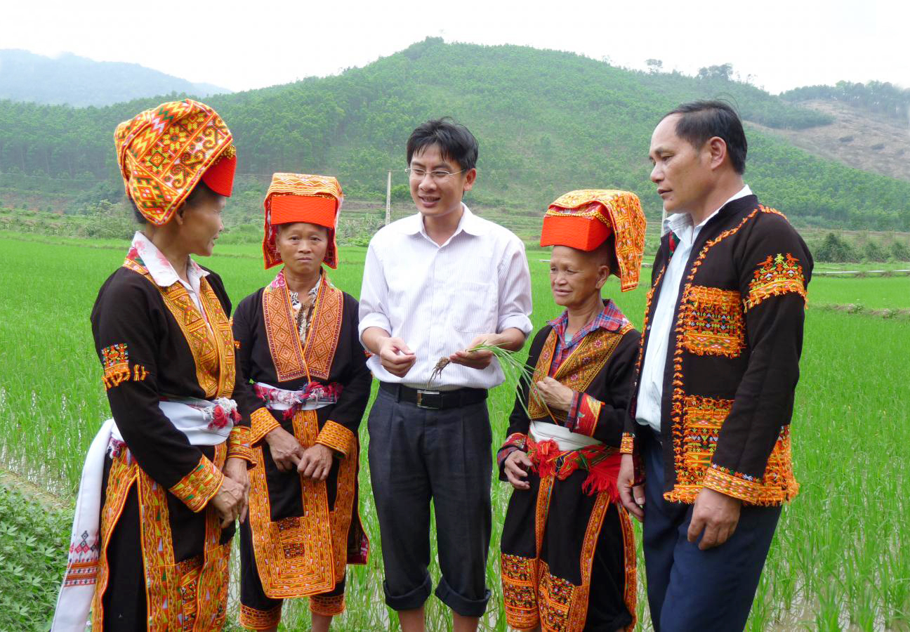 Cán bộ cơ sở hướng dẫn đồng bào Dao kỹ thuật trồng lúa_Ảnh: Tư liệu