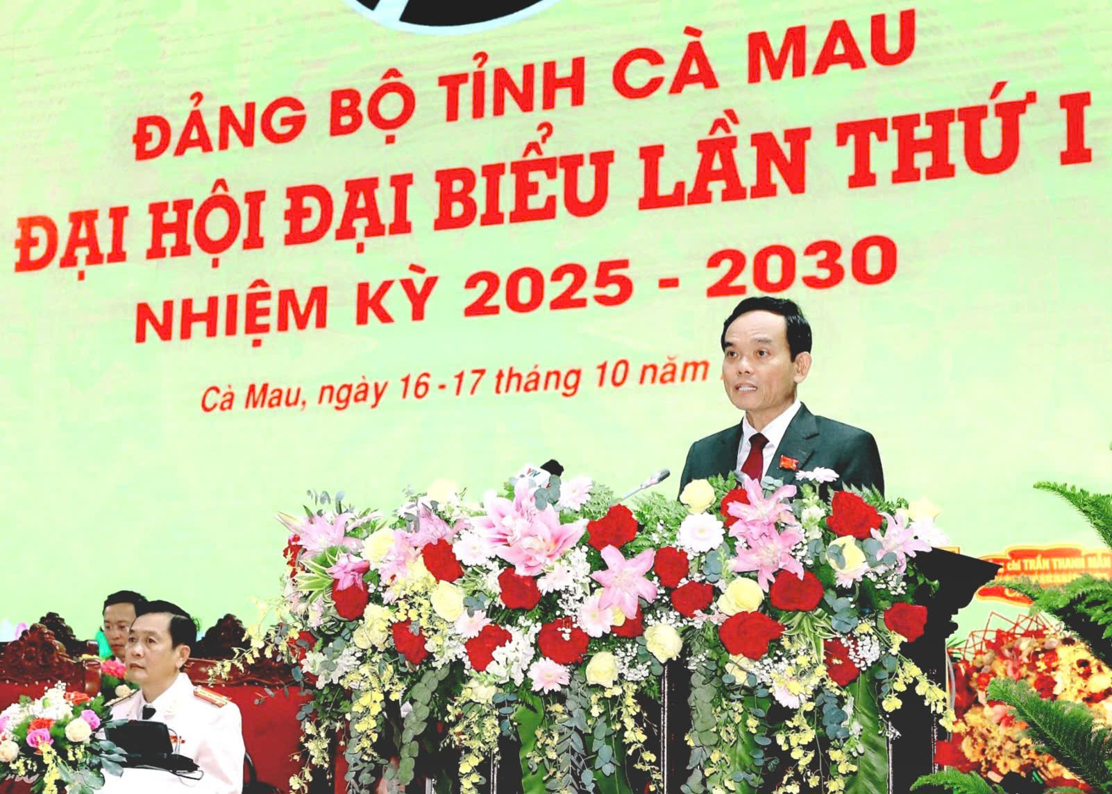 TCCS - Từ ngày 16 đến ngày 17-10-2025, Đại hội đại biểu Đảng bộ tỉnh Cà Mau lần thứ I, nhiệm kỳ 2025 - 2030 với chủ đề “Phát huy truyền thống anh hùng cách mạng, đoàn kết; xây dựng Đảng và hệ thống chính trị trong sạch, vững mạnh; đột phá về khoa học, công nghệ, đổi mới sáng tạo và chuyển đổi số; tận dụng thời cơ, lợi thế, tiềm năng của tỉnh địa đầu cực Nam Tổ quốc để phát triển toàn diện, vững tin cùng cả nước bước vào kỷ nguyên mới” đã diễn ra trọng thể và thành công tốt đẹp. Đồng chí Trần Lưu Quang, Bí thư Trung ương Đảng, Bí thư Thành ủy Thành phố Hồ Chí Minh thay mặt Bộ Chính trị tham dự và phát biểu chỉ đạo Đại hội.