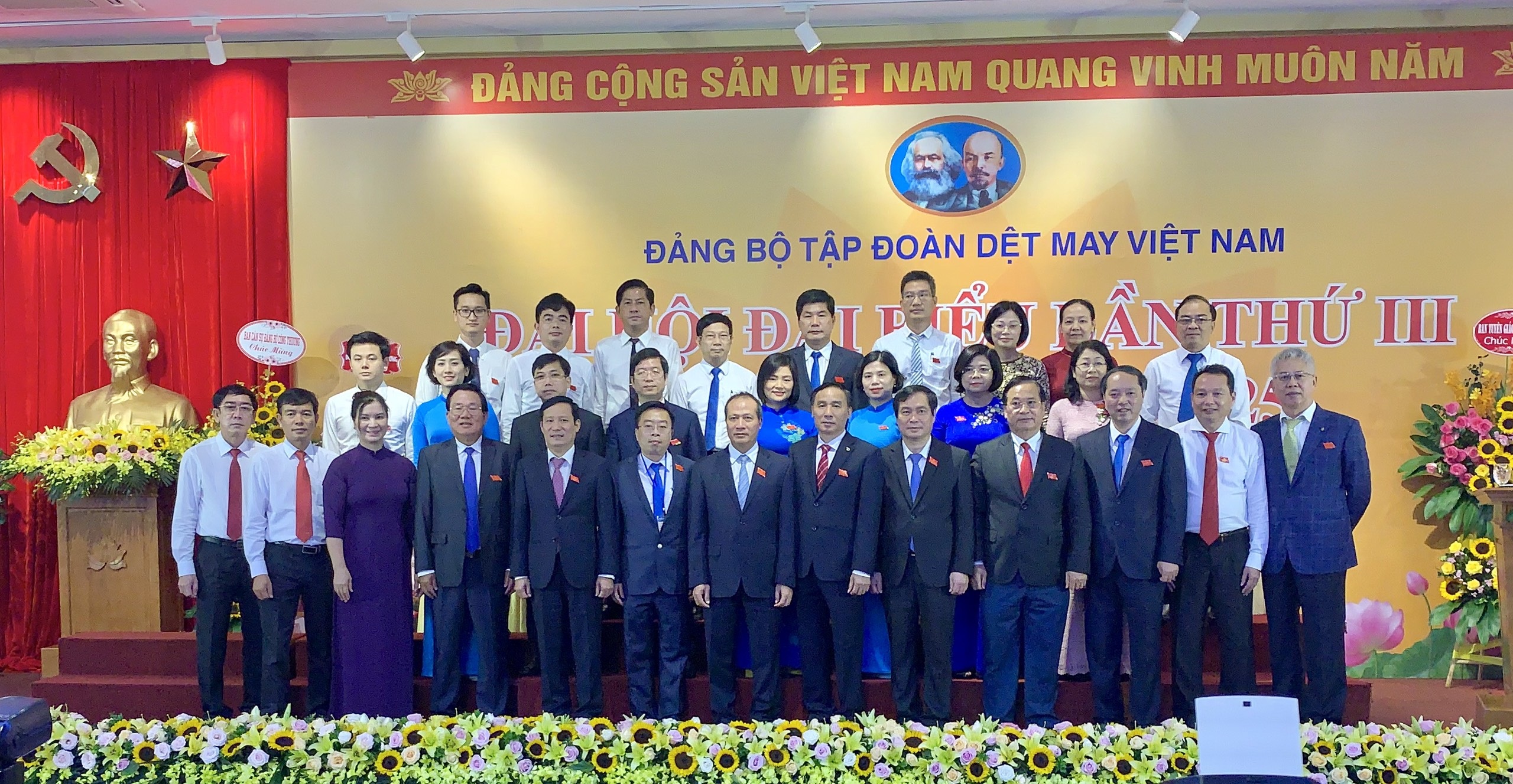 TCCS - Sau 2 ngày (ngày 24 và 25-8-2020) làm việc sôi nổi, tích cực và trách nhiệm, Đại hội đại biểu Đảng bộ Tập đoàn Dệt May Việt Nam lần thứ III, nhiệm kỳ 2020 - 2025 diễn ra tại thủ đô Hà Nội đã hoàn thành xuất sắc nhiệm vụ đề ra và thành công tốt đẹp. Đại hội có sự tham dự của 194 đại biểu chính thức, đại diện cho ý chí và nguyện vọng của gần 2.000 cán bộ, đảng viên, công nhân viên, người lao động của Đảng bộ Tập đoàn Dệt May Việt Nam.