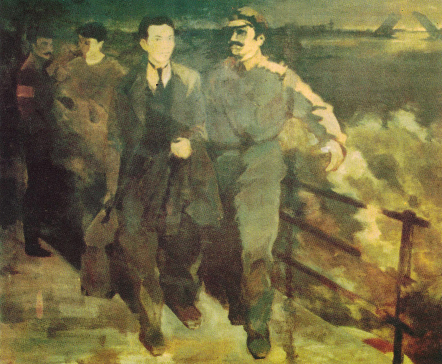 Nguyễn Ái Quốc đến Petrograd, tháng 6-1923 (tranh sơn dầu của họa sĩ Hồ Thọ) _Nguồn: Nhà xuất bản Mỹ thuật