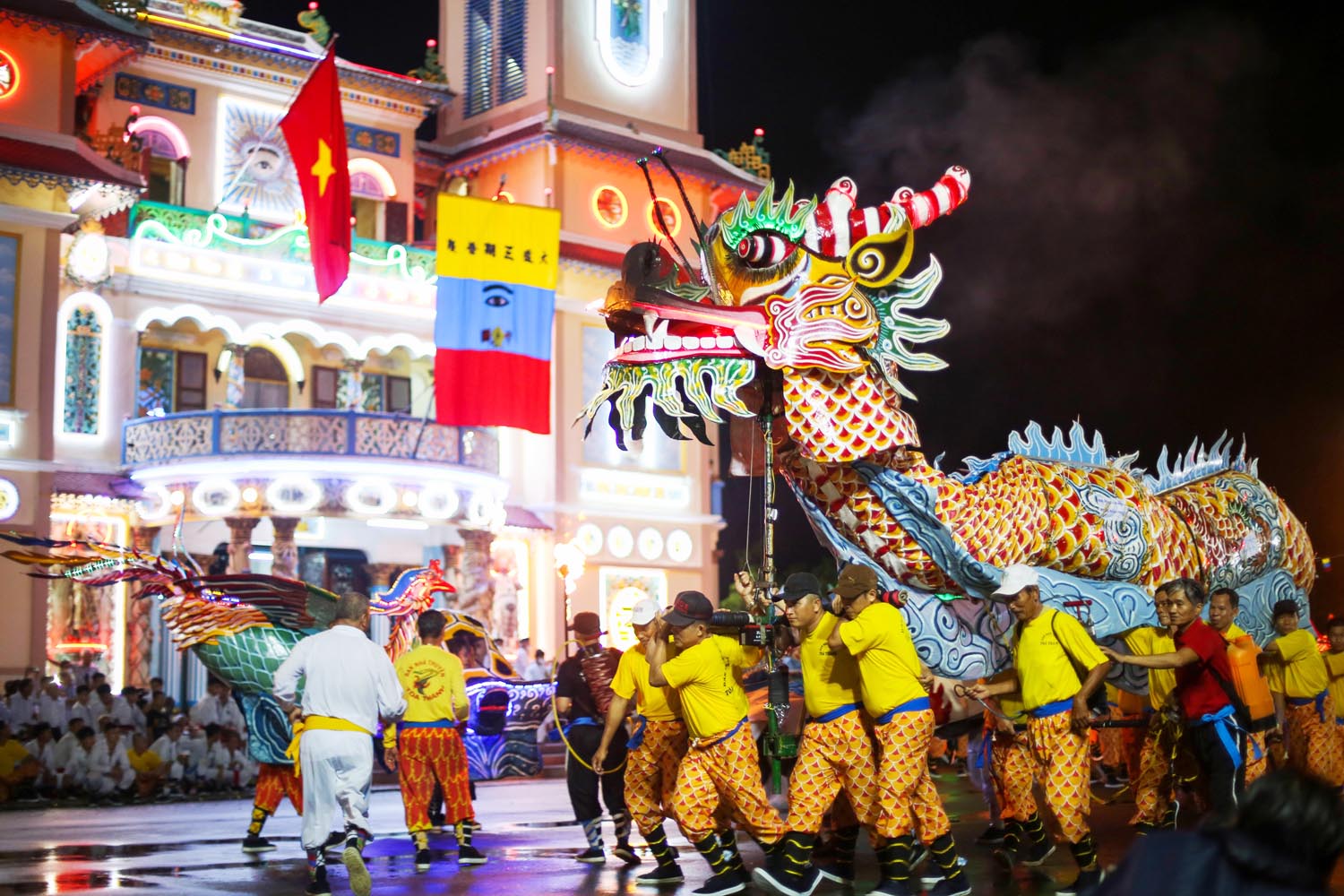 Nhân dân xem múa rồng nhang đại lễ Hội Yến Diêu Trì Cung - lễ hội lớn nhất trong năm của Tòa thánh Cao Đài Tây Ninh trong đêm trung thu _Nguồn: thanhnien.vn