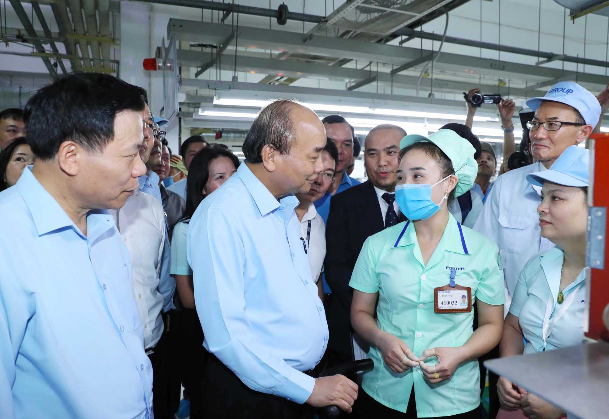 Đảng ta đã vận dụng và phát triển sáng tạo chủ nghĩa Mác - Lê-nin trong phát triển nền kinh tế thị trường định hướng xã hội chủ nghĩa (Trong ảnh: Ủy viên Bộ Chính trị, Thủ tướng Chính phủ Nguyễn Xuân Phúc thăm hỏi tình hình sản xuất và đời sống của công nhân Khu công nghiệp VSIP Bắc Ninh) _Nguồn: baochinhphu.vn