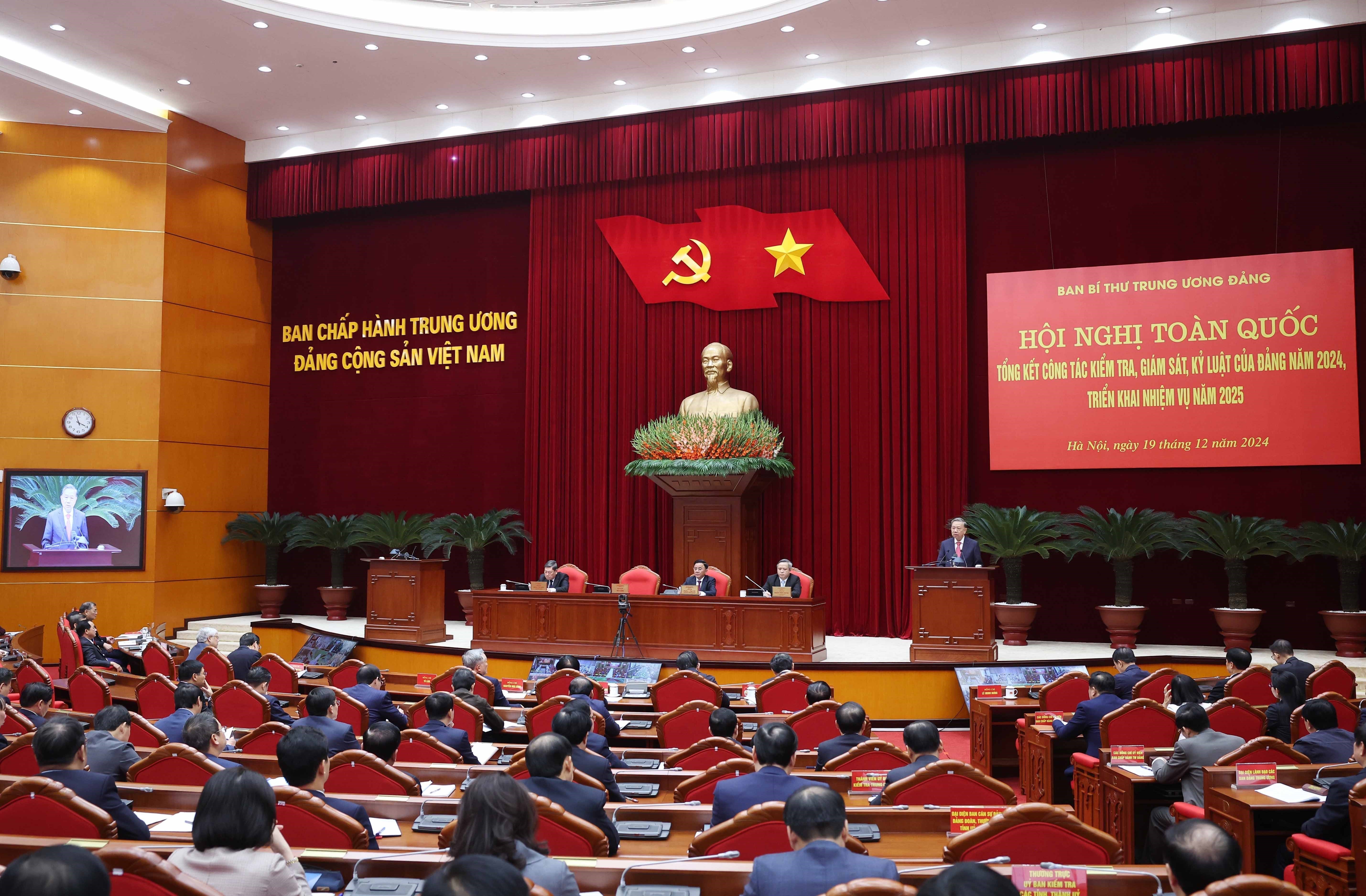 Phát biểu chỉ đạo tại hội nghị, thay mặt Ban Chấp hành Trung ương, Bộ Chính trị, Ban Bí thư, Tổng Bí thư Tô Lâm nhiệt liệt hoan nghênh và biểu dương những thành tích cấp ủy, ủy ban kiểm tra các cấp đã đạt được trong công tác kiểm tra, giám sát của Đảng từ đầu nhiệm kỳ đến nay cũng như trong năm 2024. Kết quả này đã góp phần quan trọng trong công cuộc xây dựng, chỉnh đốn Đảng, hệ thống chính trị trong sạch, vững mạnh, củng cố, tăng cường niềm tin của cán bộ, đảng viên và nhân dân với Đảng.