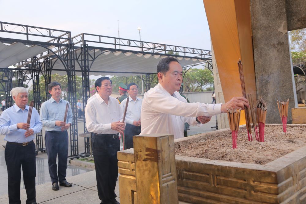 Dâng hoa, dâng hương tại đài tưởng niệm Thành Cổ Quảng Trị, đoàn đã dành phút mặc niệm để tưởng nhớ các anh hùng, liệt sĩ đã không tiếc máu xương ngã xuống trong cuộc chiến 81 ngày đêm bảo vệ Thành Cổ Quảng Trị, tạo tiền đề cho cuộc Tổng tiến công và nổi dậy mùa Xuân năm 1975, giải phóng hoàn toàn miền Nam, thống nhất đất nước.