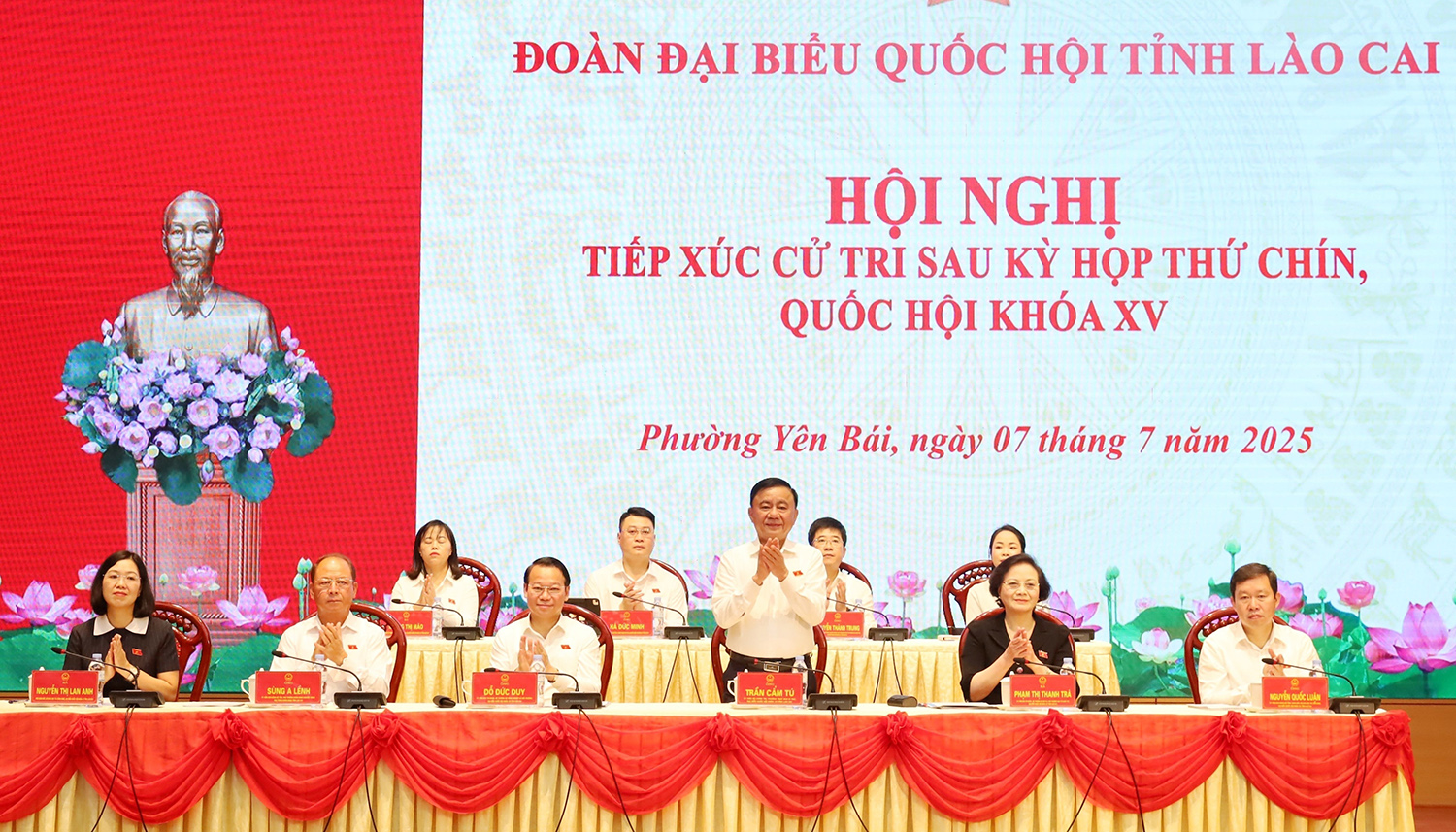 Phát biểu tại buổi tiếp xúc cử tri, Thường trực Ban Bí thư Trần Cẩm Tú thông tin nhanh về tình hình kinh tế - xã hội của cả nước 6 tháng đầu năm, định hướng 6 tháng cuối năm 2025. Thường trực Ban Bí thư đề nghị tỉnh tiếp tục quan tâm, chú trọng công tác xây dựng Đảng, hệ thống chính trị trong sạch, vững mạnh và phát huy tinh thần đoàn kết trong Đảng; tập trung chỉ đạo đại hội đảng bộ các cấp nhiệm kỳ 2025 - 2030 và bầu cử Quốc hội khóa XVI và đại biểu hội đồng nhân dân các cấp nhiệm kỳ 2026 - 2031 thành công. Tỉnh tập trung lãnh đạo, chỉ đạo thực hiện các nhiệm vụ phát triển kinh tế - xã hội, bảo đảm mục tiêu tăng trưởng đề ra; khẩn trương rà soát quy hoạch chung, thống nhất hoàn thiện quy hoạch tổng thể để xây dựng cơ chế chính sách đặc thù bảo đảm phát triển đồng bộ, hài hòa khai thác được tiềm năng lợi thế của tỉnh. Địa phương triển khai hiệu quả định hướng, mục tiêu nhiệm vụ phát triển tỉnh Lào Cai mới; đẩy nhanh tiến độ thực hiện các dự án trọng điểm, nhất là dự án kết nối vùng, thực hiện tốt công tác quốc phòng, an ninh, đối ngoại.