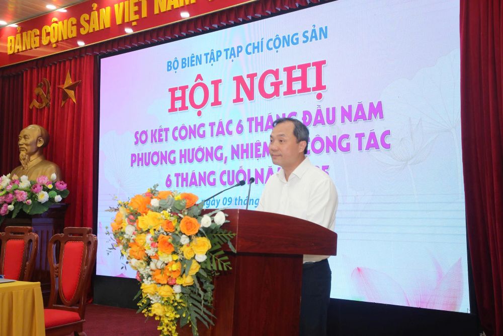 Trình bày tóm tắt báo cáo sơ kết công tác 6 tháng đầu năm, triển khai nhiệm vụ công tác 6 tháng cuối năm 2025, đồng chí Phạm Minh Tuấn cho biết, trong 6 tháng đầu năm 2025, bám sát định hướng của Trung ương, Bộ Chính trị, Ban Bí thư, Chính phủ, Quốc hội; Quyết định số 213-QĐ/TW, ngày 28-12-2024, của Bộ Chính trị, về chức năng, nhiệm vụ, tổ chức bộ máy của Tạp chí Cộng sản, Tạp chí đã chủ động, tích cực triển khai thực hiện và hoàn thành tốt nhiệm vụ chính trị được giao trên các mặt: biên tập - xuất bản các ấn phẩm; tổng kết thực tiễn, nghiên cứu lý luận, nghiên cứu khoa học, đấu tranh phản bác các quan điểm sai trái, thù địch; thông tin đối ngoại, hướng dẫn lý luận, là Cơ quan thường trực của Giải Búa liềm vàng… Các ấn phẩm của Tạp chí Cộng sản bảo đảm chất lượng, định hướng tuyên truyền, tính lý luận, hàm lượng khoa học cao.