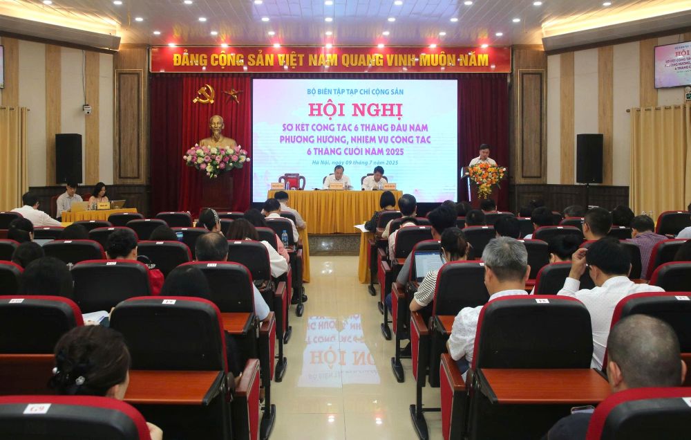 TCCS - Ngày 9-7-2025, tại Hà Nội, Bộ Biên tập Tạp chí Cộng sản tổ chức Hội nghị sơ kết công tác 6 tháng đầu năm, triển khai nhiệm vụ công tác 6 tháng cuối năm 2025. Dự và chủ trì Hội nghị có các đồng chí: TS Hoàng Trung Dũng, Ủy viên Trung ương Đảng, Tổng Biên tập Tạp chí Cộng sản; PGS, TS Phạm Minh Tuấn, Phó Tổng Biên tập; PGS, TS Nguyễn Ngọc Hà, Phó Tổng Biên tập. Cùng tham dự còn có các đồng chí đại diện các ban đảng và cơ quan được phân công theo dõi, nắm tình hình hoạt động Tạp chí Cộng sản và toàn thể cán bộ, công chức, viên chức, người lao động của Bộ Biên tập Tạp chí Cộng sản.