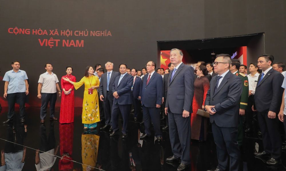 Ngay sau khi thực hiện nghi thức Khai mạc triển lãm, Tổng Bí thư Tô Lâm, Thủ tướng Chính phủ Phạm Minh Chính, Chủ tịch Quốc hội Trần Thanh Mẫn và các đại biểu đã tham quan các không gian trưng bày thành tựu đất nước.