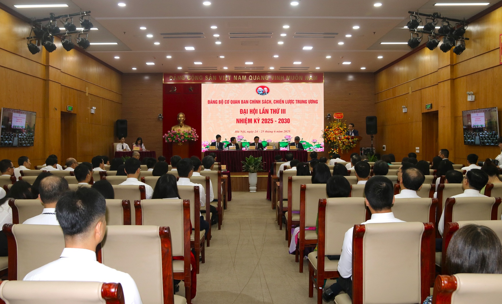 Với phương châm: “Đoàn kết - Dân chủ - Kỷ cương - Trí tuệ - Đột phá - Phát triển” và chủ đề: “Xây dựng Đảng bộ trong sạch, vững mạnh toàn diện; phát huy đoàn kết, trí tuệ; đổi mới tư duy, không ngừng sáng tạo; nâng cao chất lượng tham mưu chính sách, chiến lược phát triển đất nước trong Kỷ nguyên mới”, Đại hội Đảng bộ cơ quan Ban Chính sách, chiến lược Trung ương lần thứ III diễn ra trong thời điểm Ban đang tập trung tổ chức triển khai công việc theo chức năng, nhiệm vụ, tổ chức bộ máy mới được kiện toàn theo Quyết định số 247-QĐ/TW, ngày 24-1-2025, của Bộ Chính trị; đánh dấu một giai đoạn mới trong hoạt động của cơ quan.